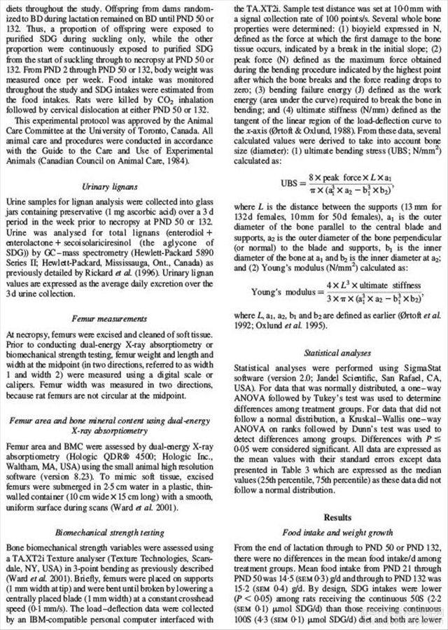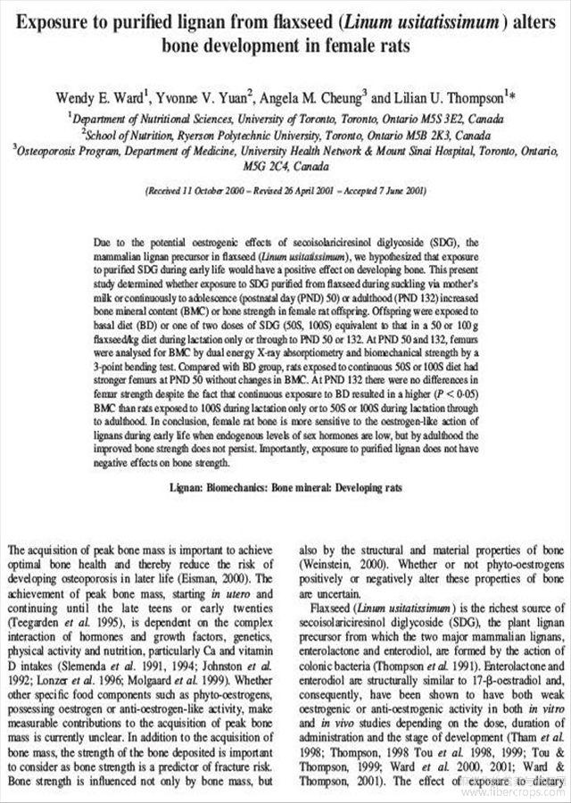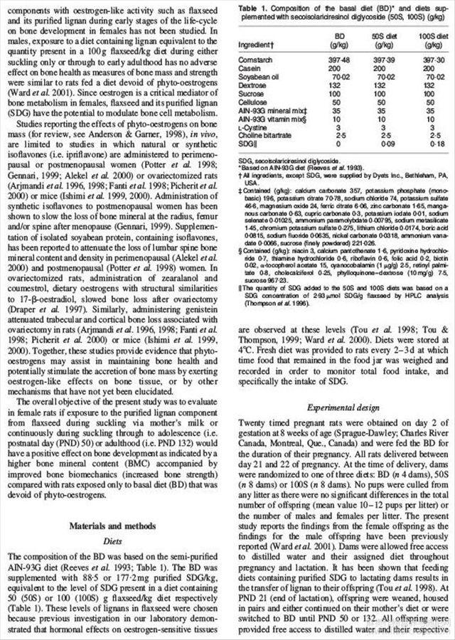 亚麻天然木酚素对雌鼠骨骼发育的影响(英文)