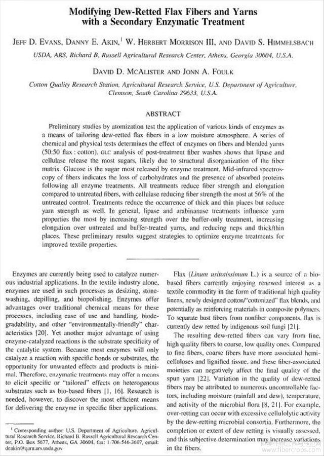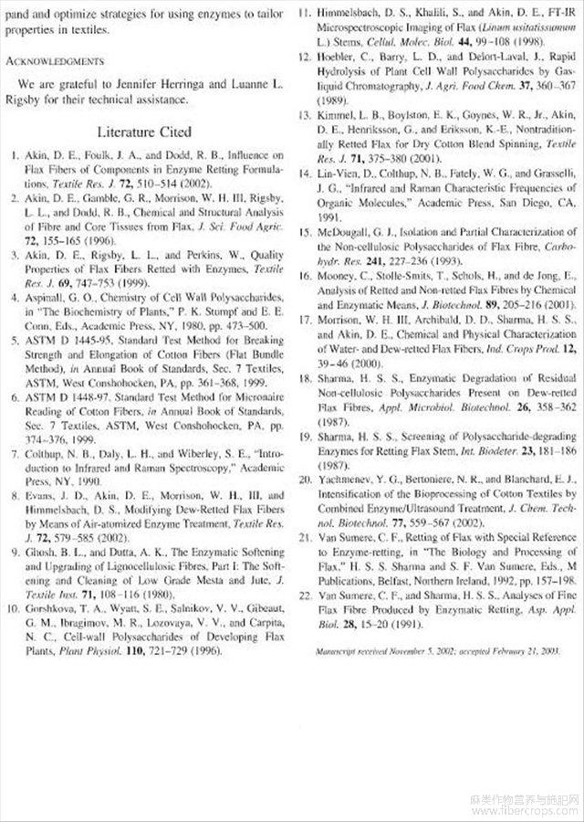亚麻湿法脱胶技术的调整及纱线二次酶处理的研究(英文)