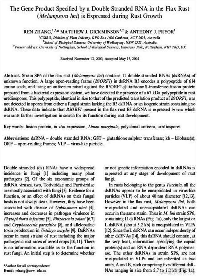 亚麻锈病基因的双链RNA特异性表达(英文)