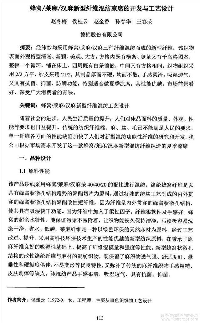 蜂窝_莱麻_汉麻新型纤维混纺凉席的开发与工艺设计(会议论文)