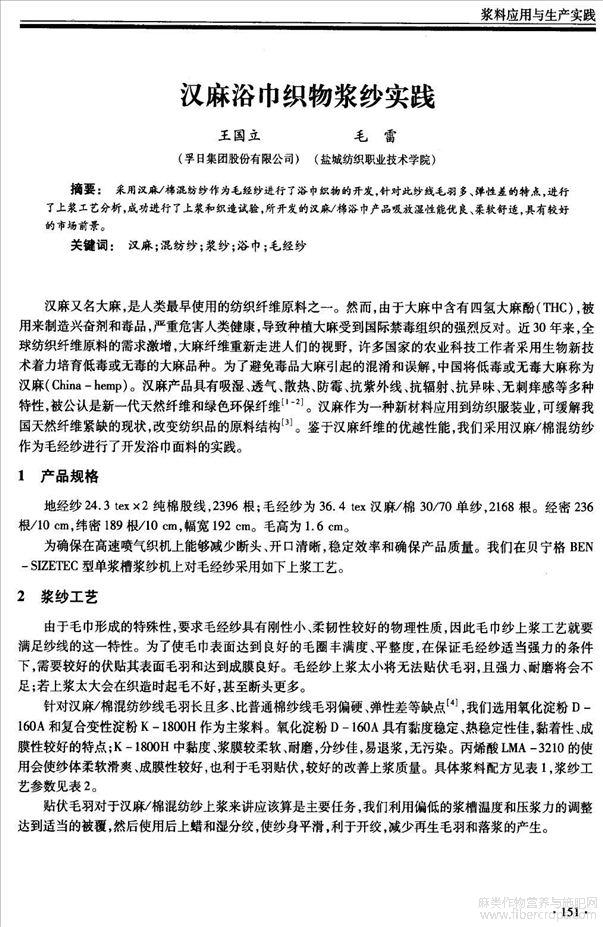 汉麻棉型化处理技术及色纺针织产品开发(会议论文)