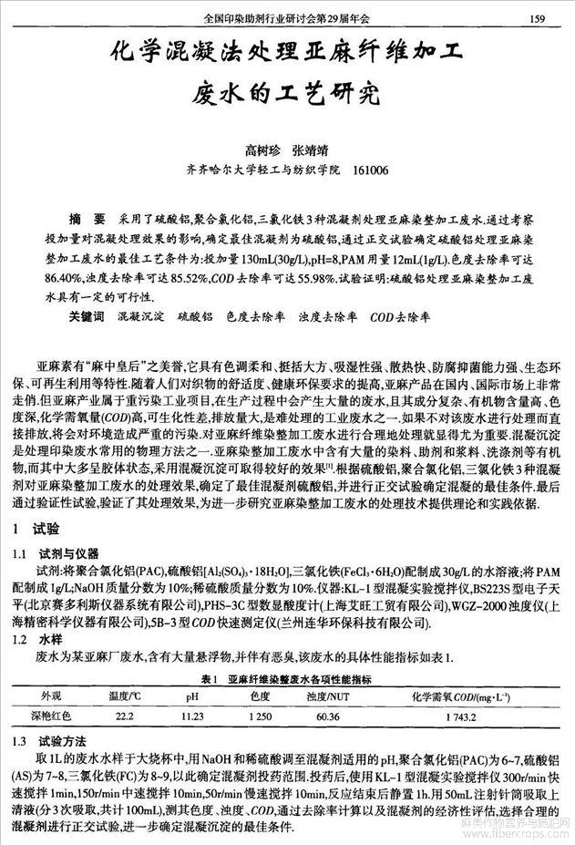 化学混凝法处理亚麻纤维加工废水的工艺研究(会议论文)