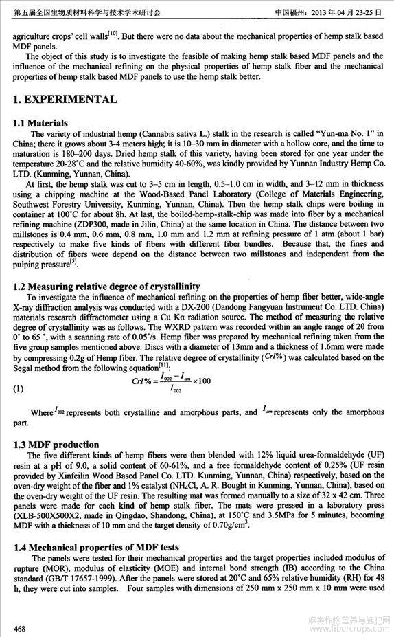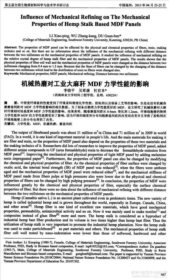机械热磨对工业大麻秆MDF力学性能的影响(会议论文)