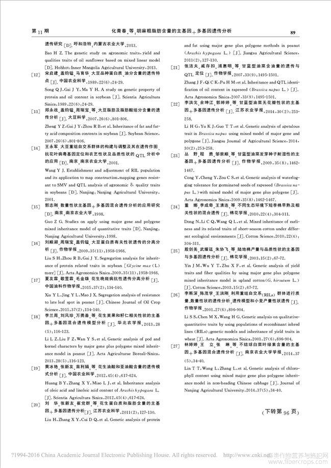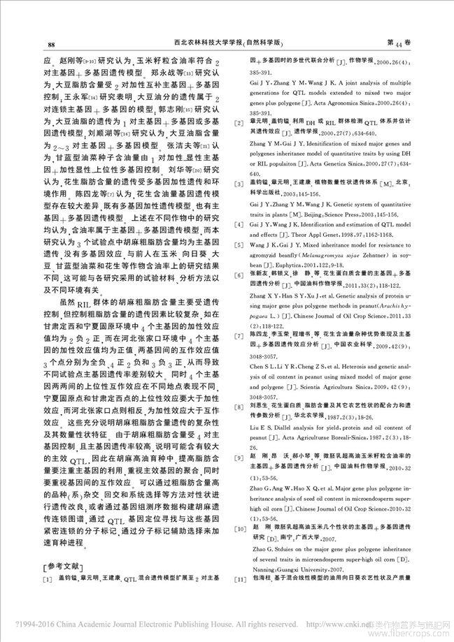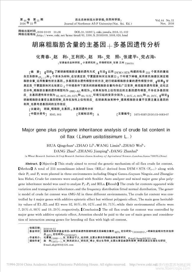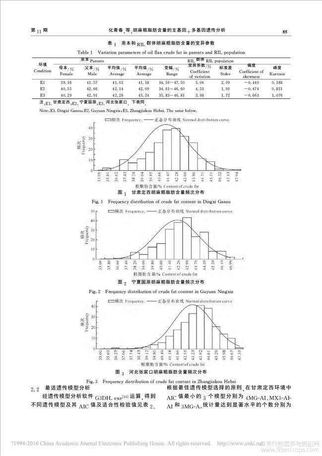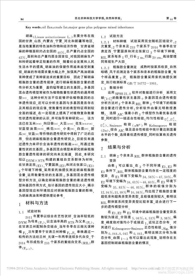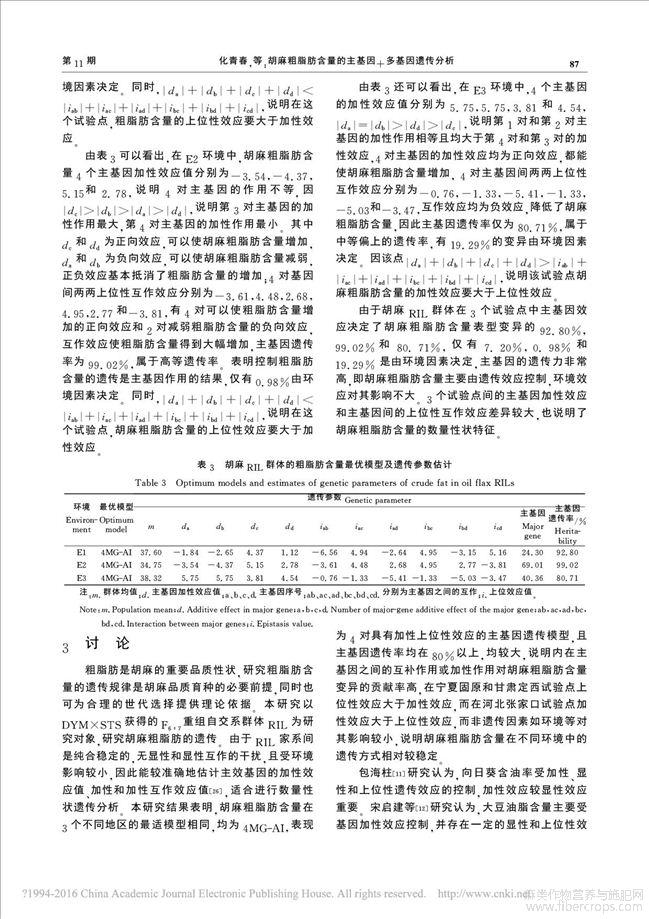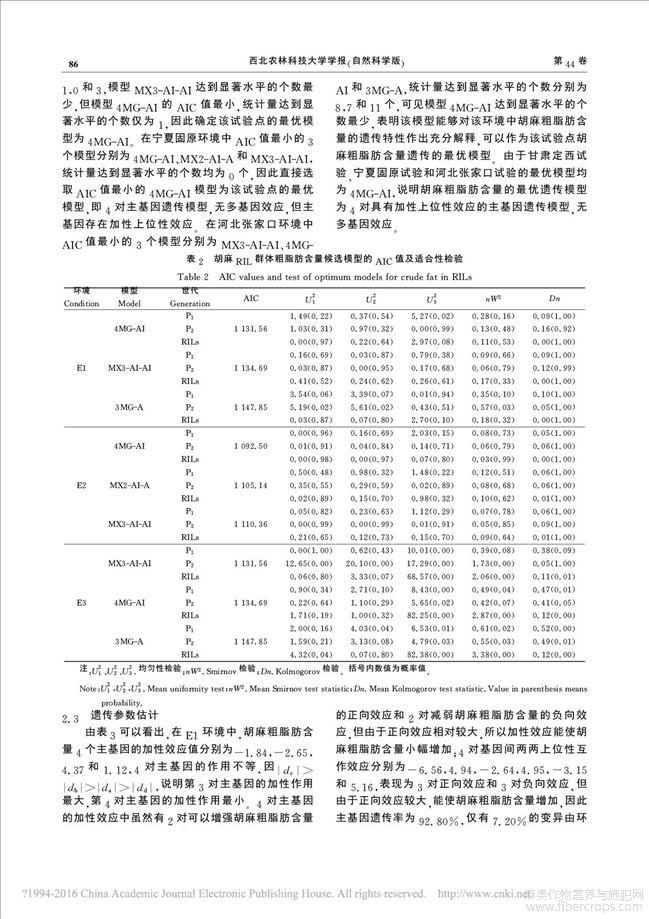 胡麻粗脂肪含量的主基因_多基因遗传分析