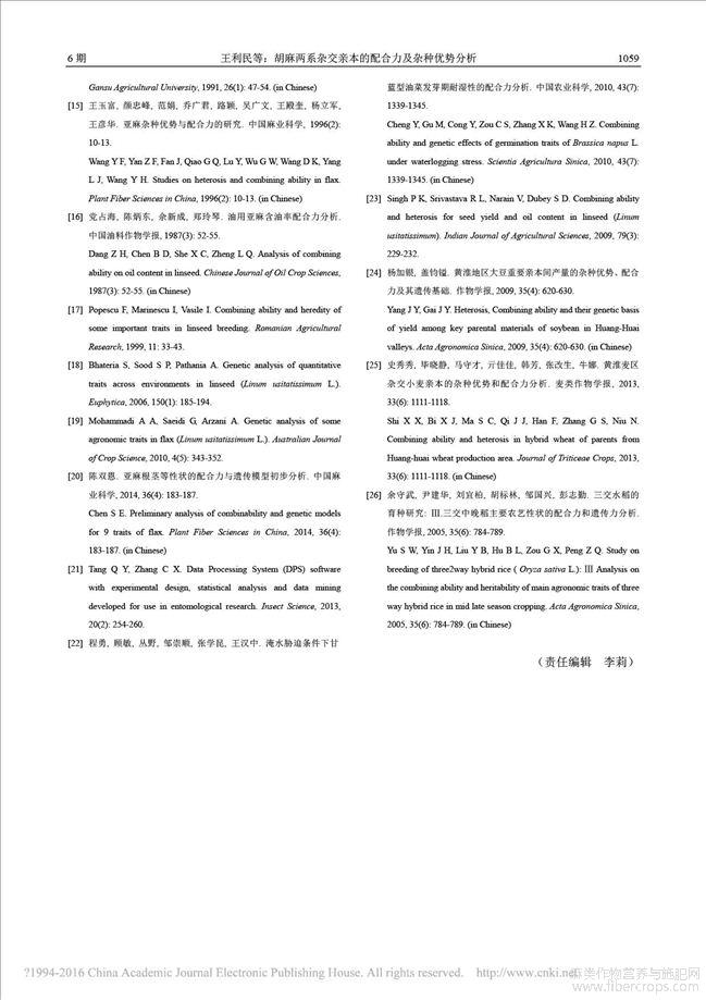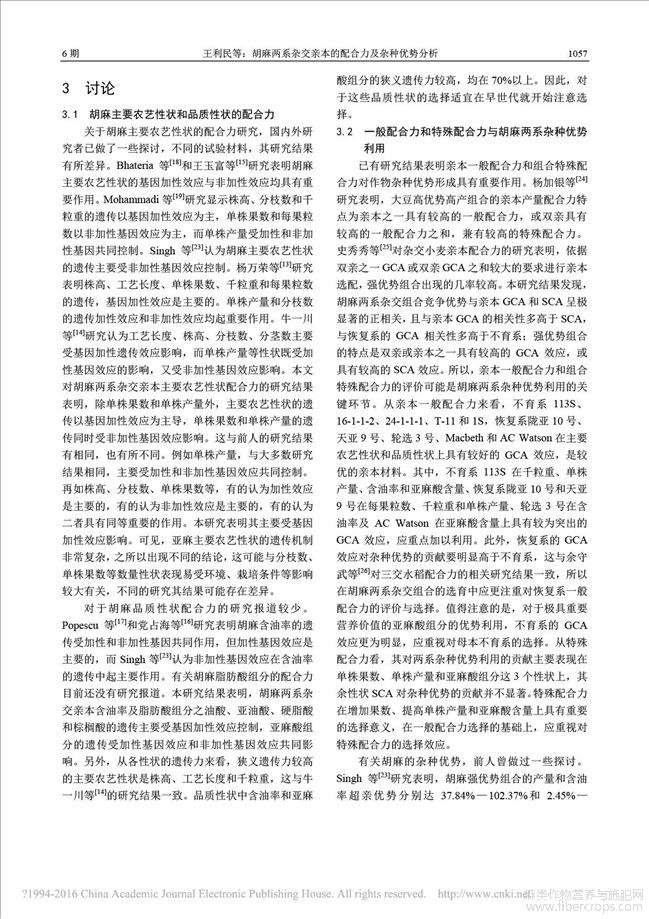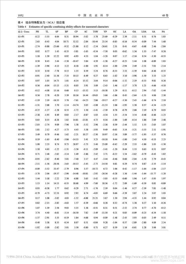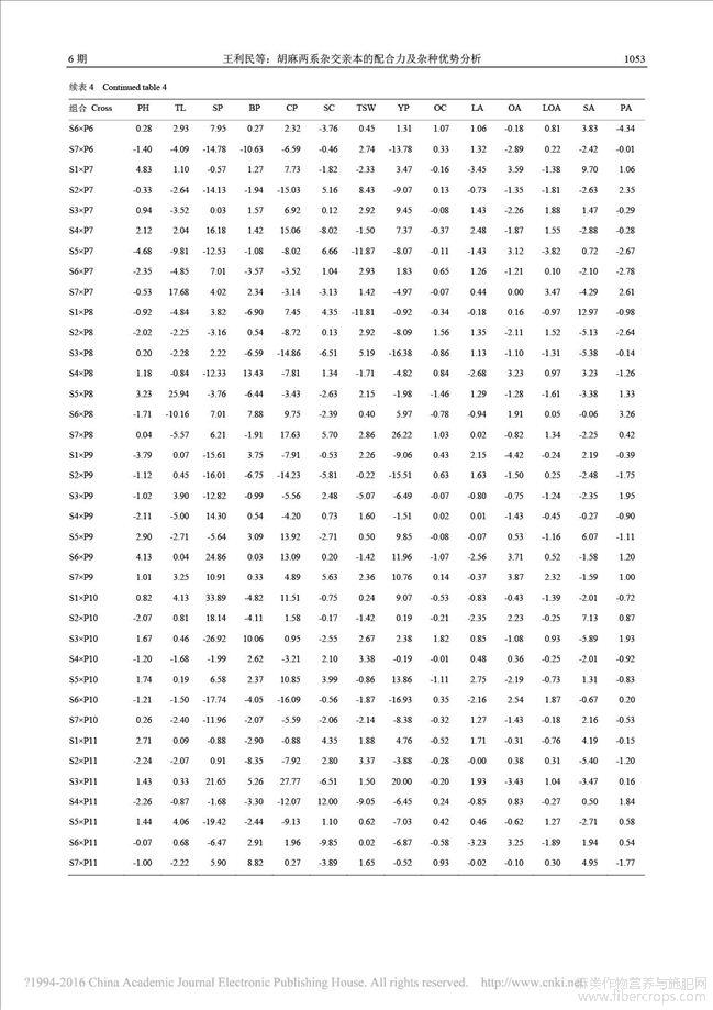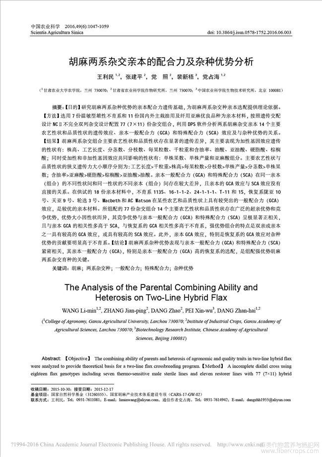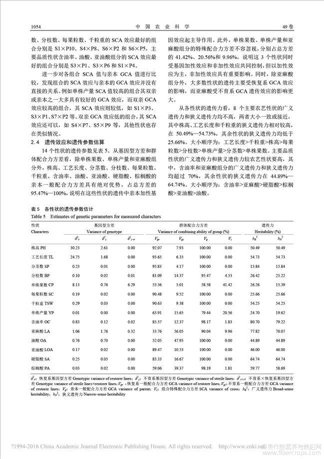 胡麻两系杂交亲本的配合力及杂种优势分析
