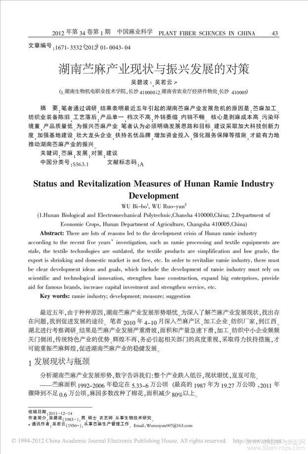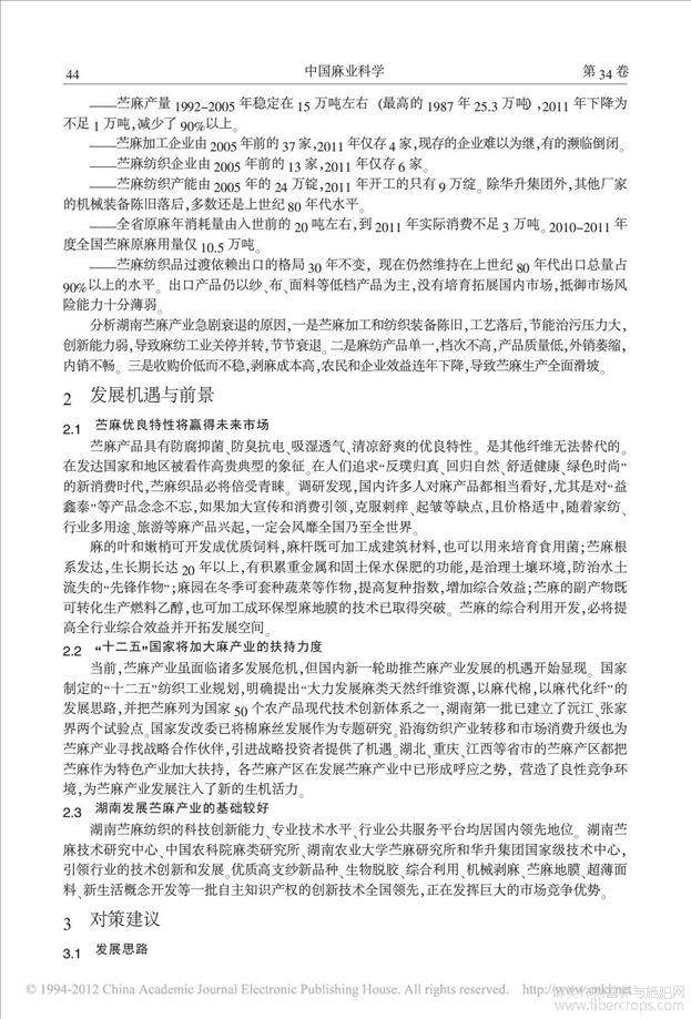 湖南苎麻产业现状与振兴发展的对策