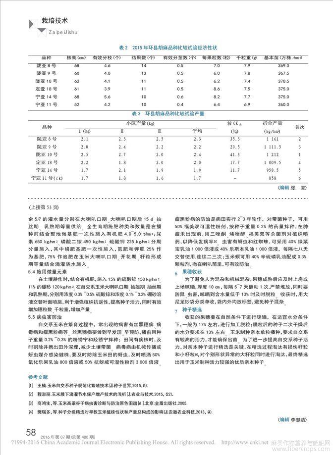 [麻进展]种群直流舀种式胡麻