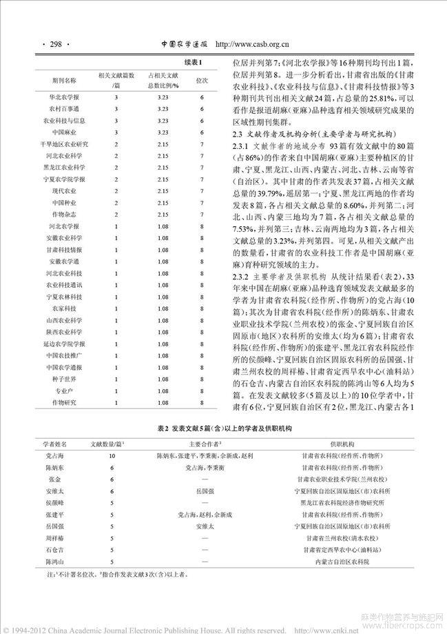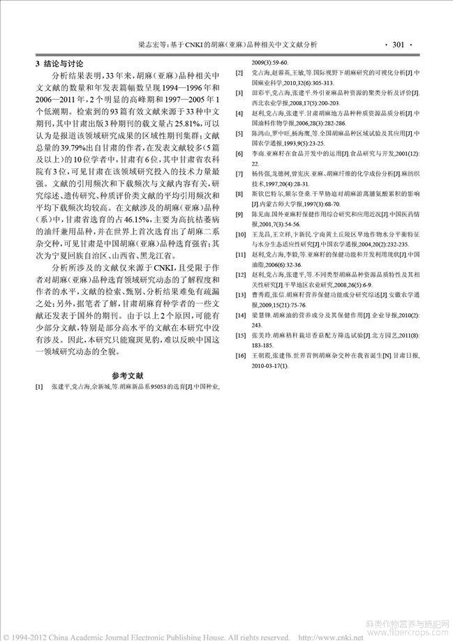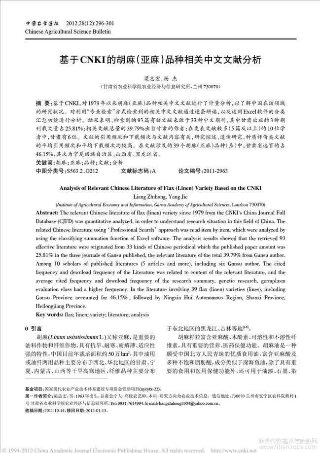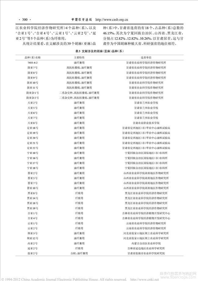 基于CNKI的胡麻_亚麻_品种相关中文文献分析