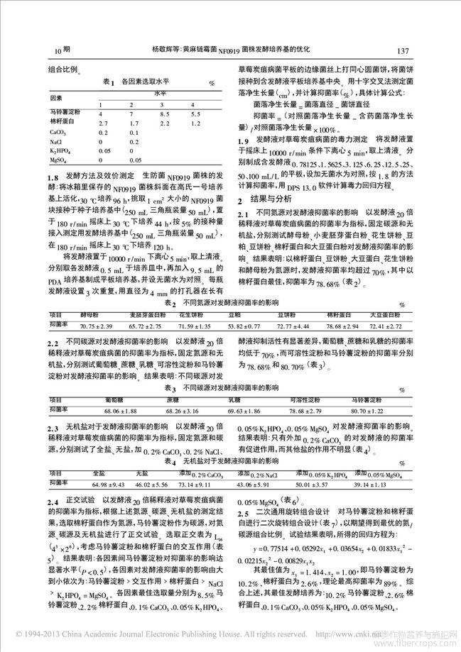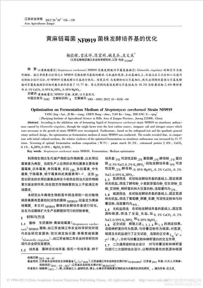 黄麻链霉菌NF0919菌株发酵培养基的优化