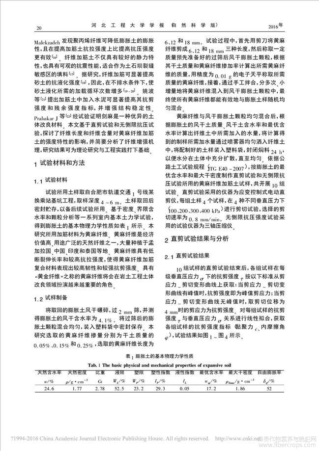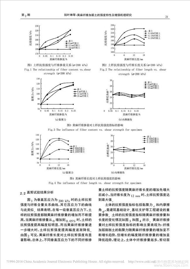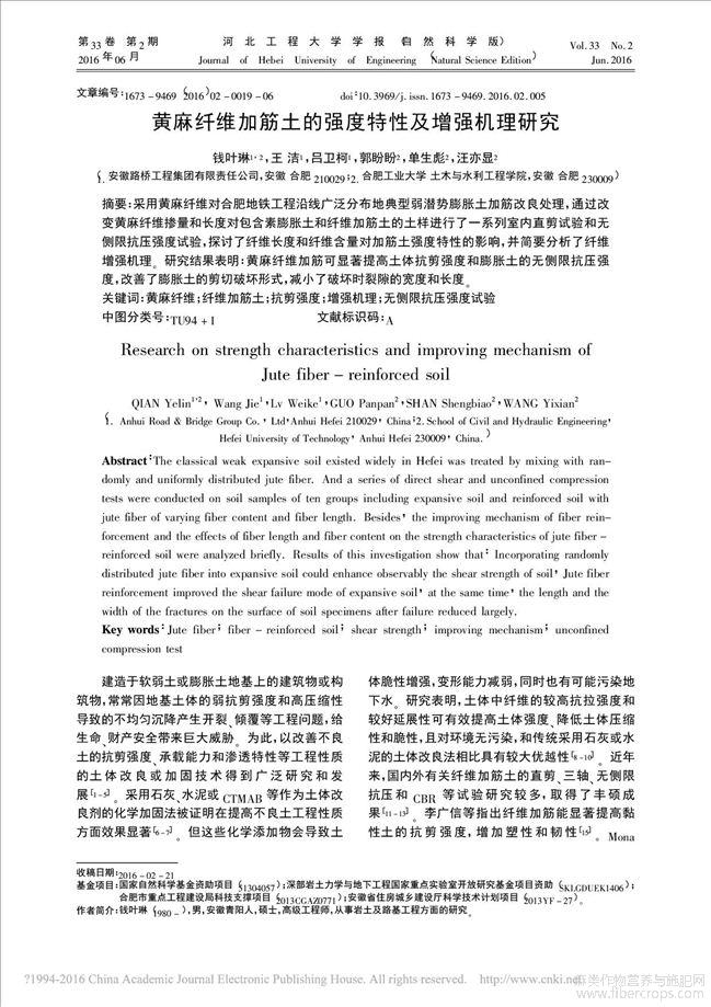 黄麻纤维加筋土的强度特性及增强机理研究