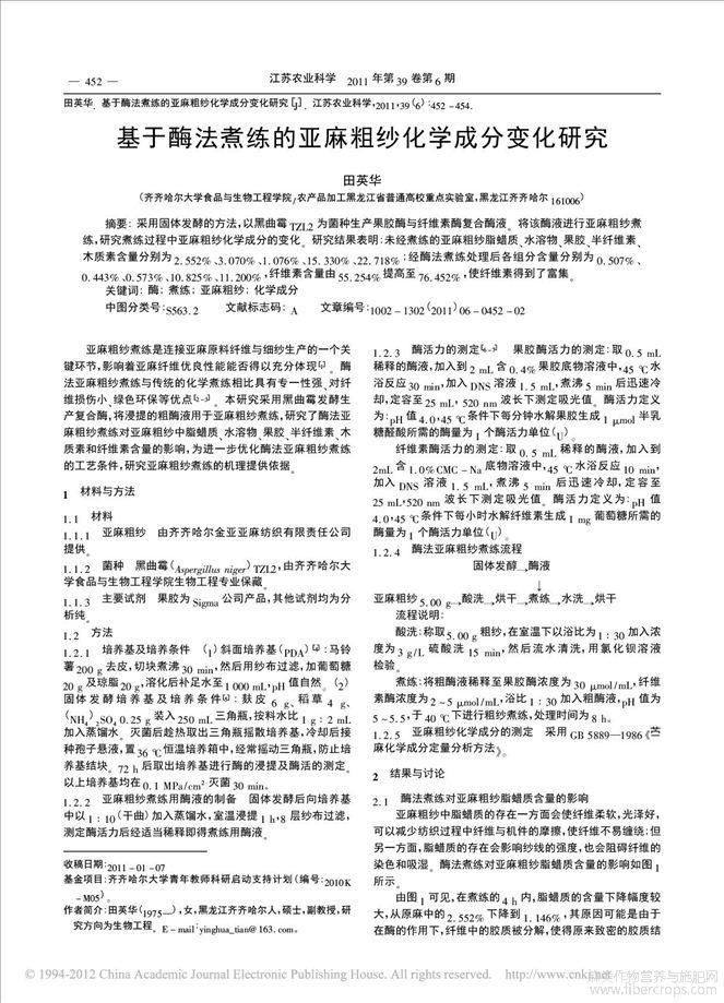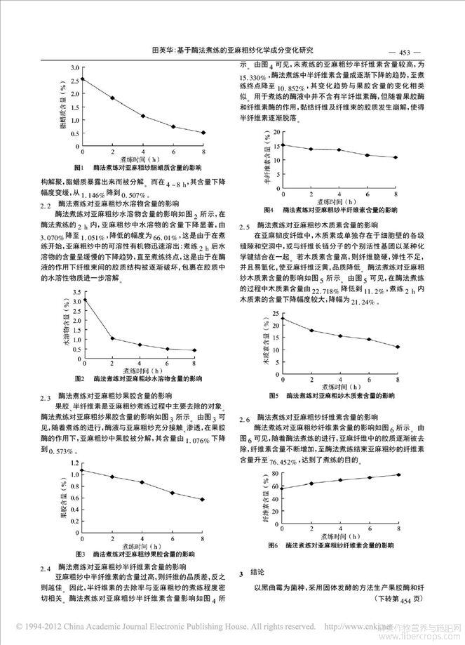 基于酶法煮练的亚麻粗纱化学成分变化研究