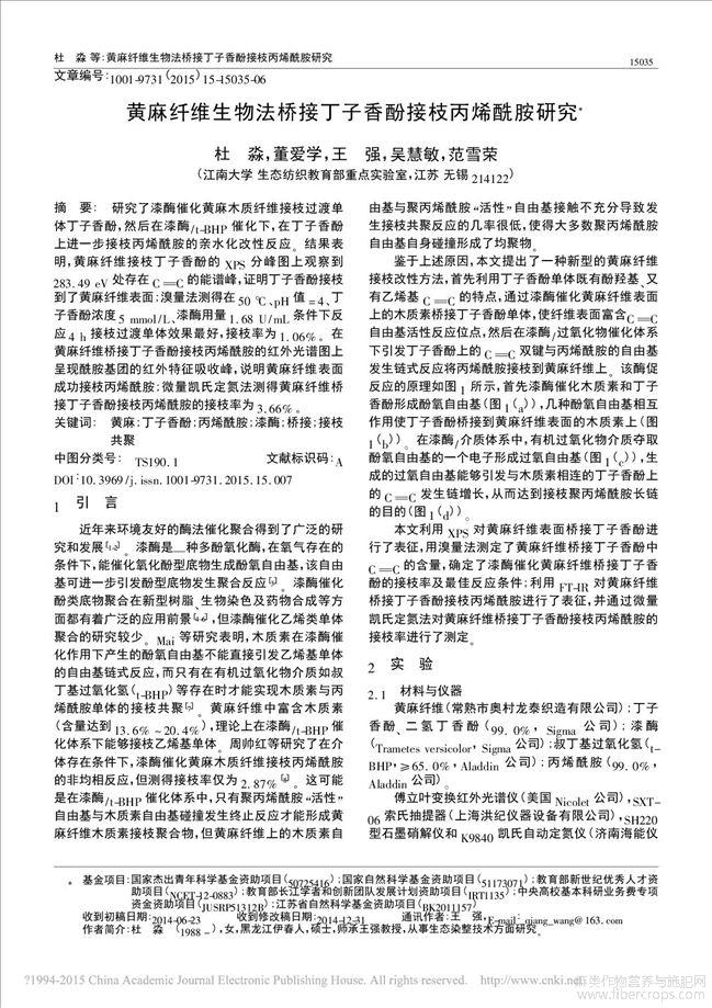 黄麻纤维生物法桥接丁子香酚接枝丙烯酰胺研究
