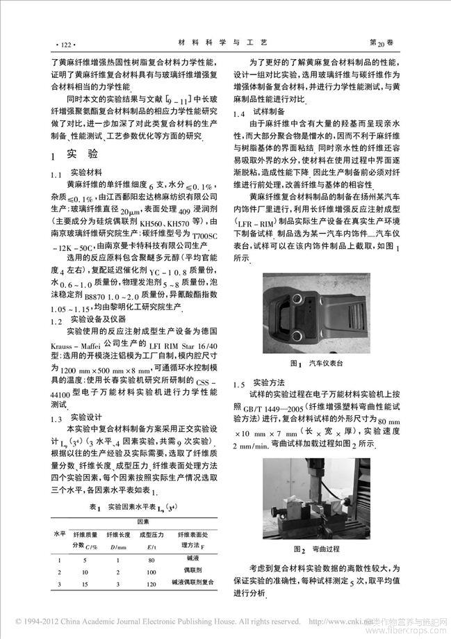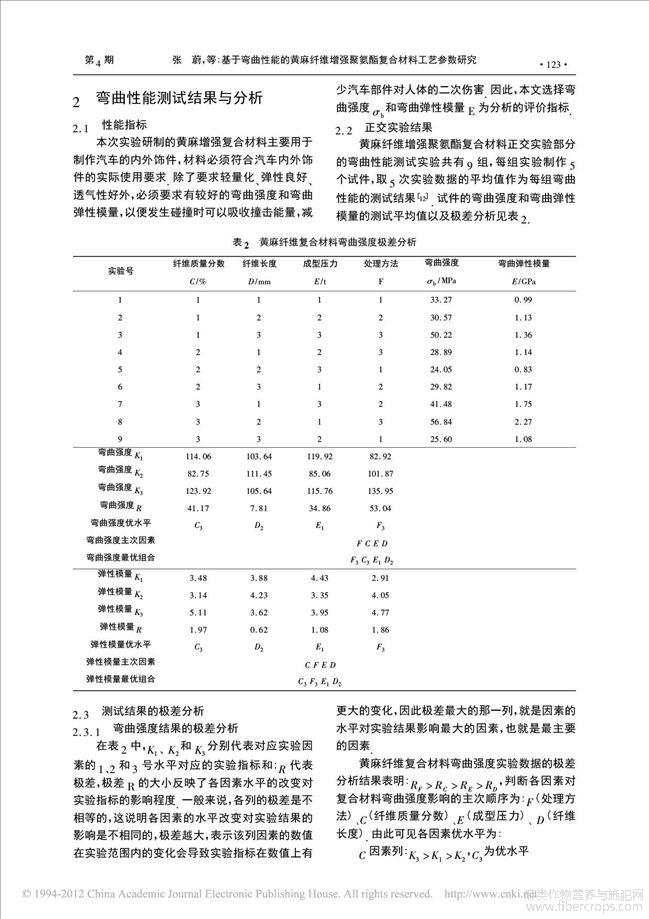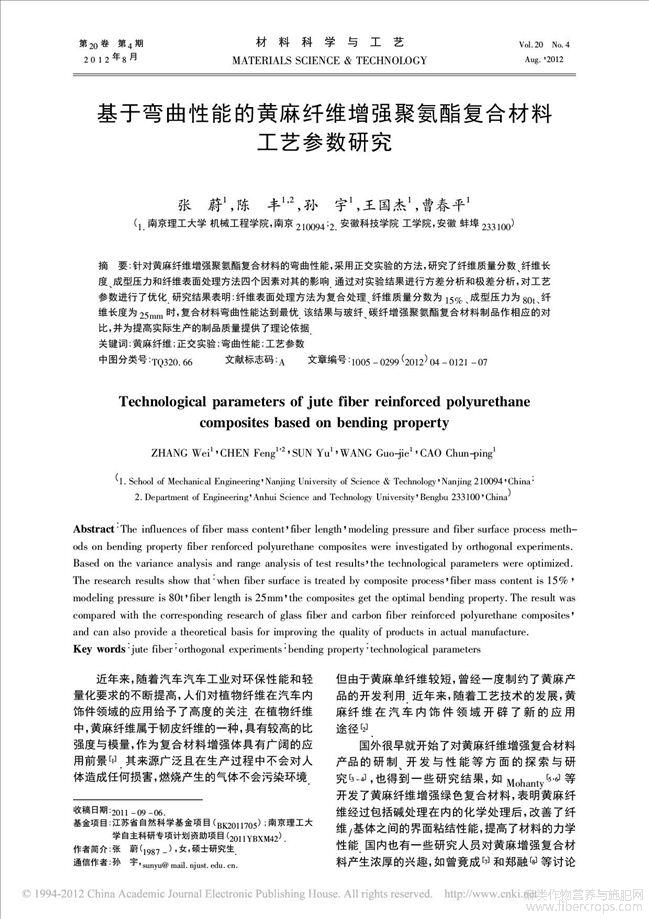 基于弯曲性能的黄麻纤维增强聚氨酯复合材料工艺参数研究
