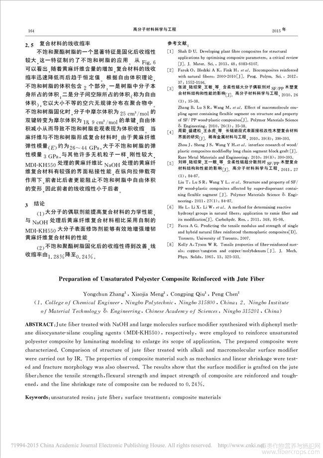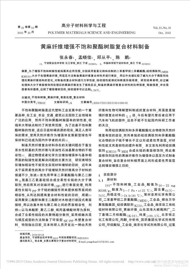 黄麻纤维增强不饱和聚酯树脂复合材料制备