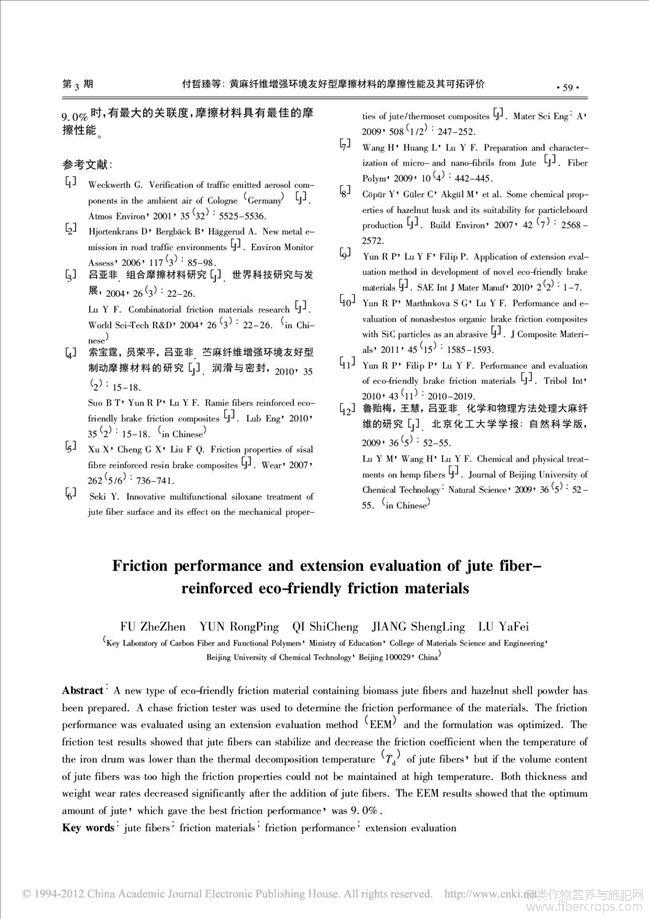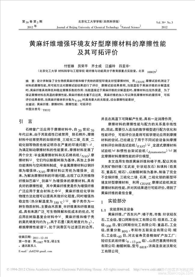 黄麻纤维增强环境友好型摩擦材料的摩擦性能及其可拓评价
