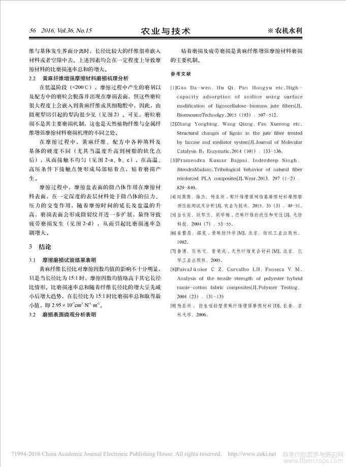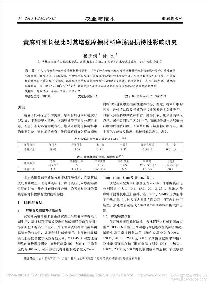 黄麻纤维长径比对其增强摩擦材料摩擦磨损特性影响研究