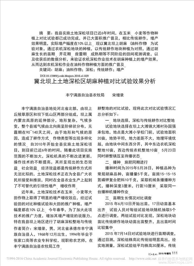 冀北坝上土地深松区胡麻种植对比试验效果分析