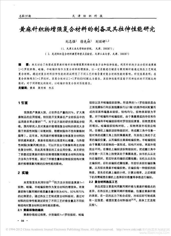 黄麻针织物增强复合材料的制备及其拉伸性能研究