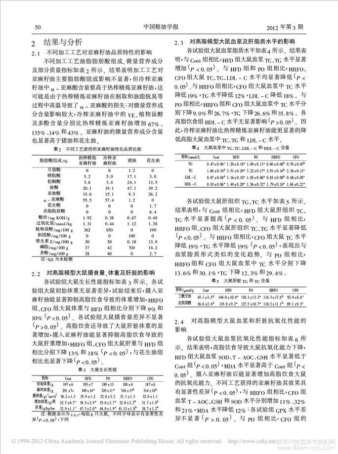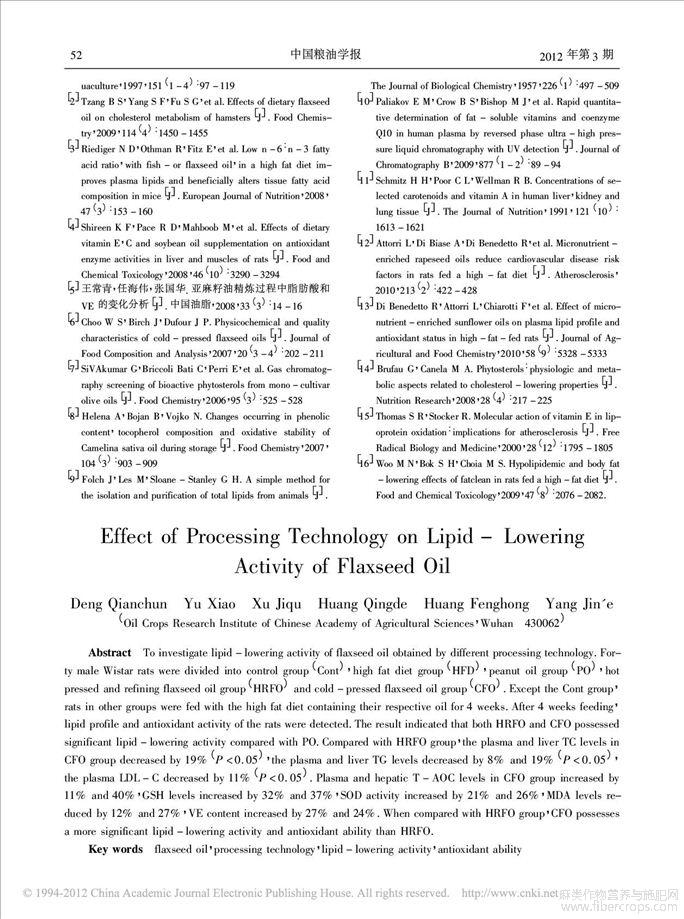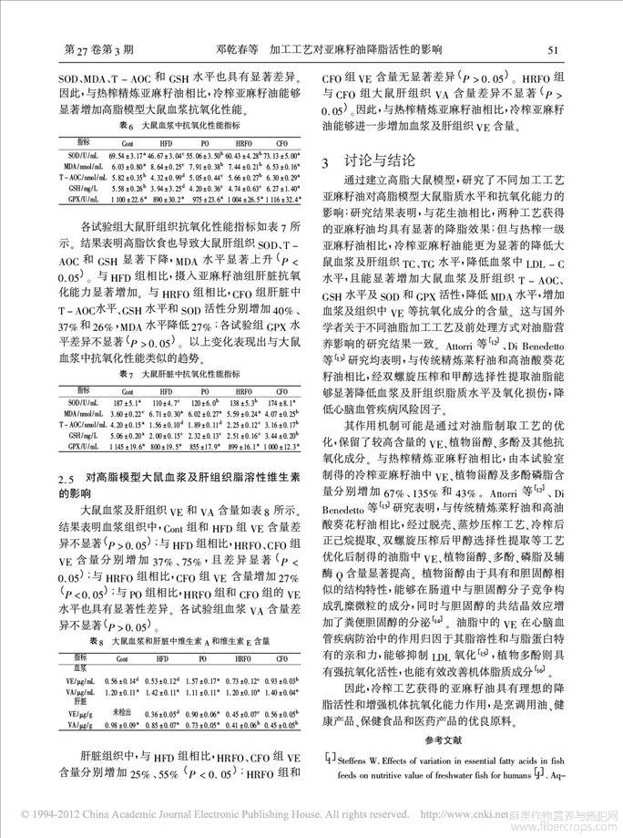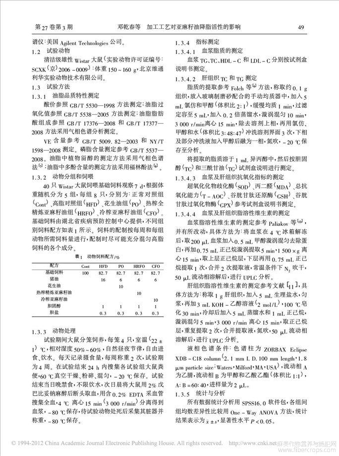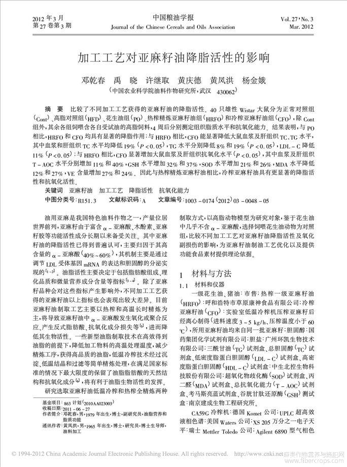 加工工艺对亚麻籽油降脂活性的影响