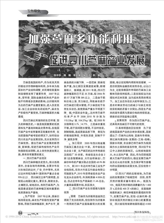 加快达州市苎麻产业多用途循环农业模式推广的建议