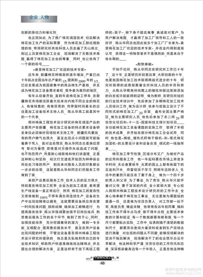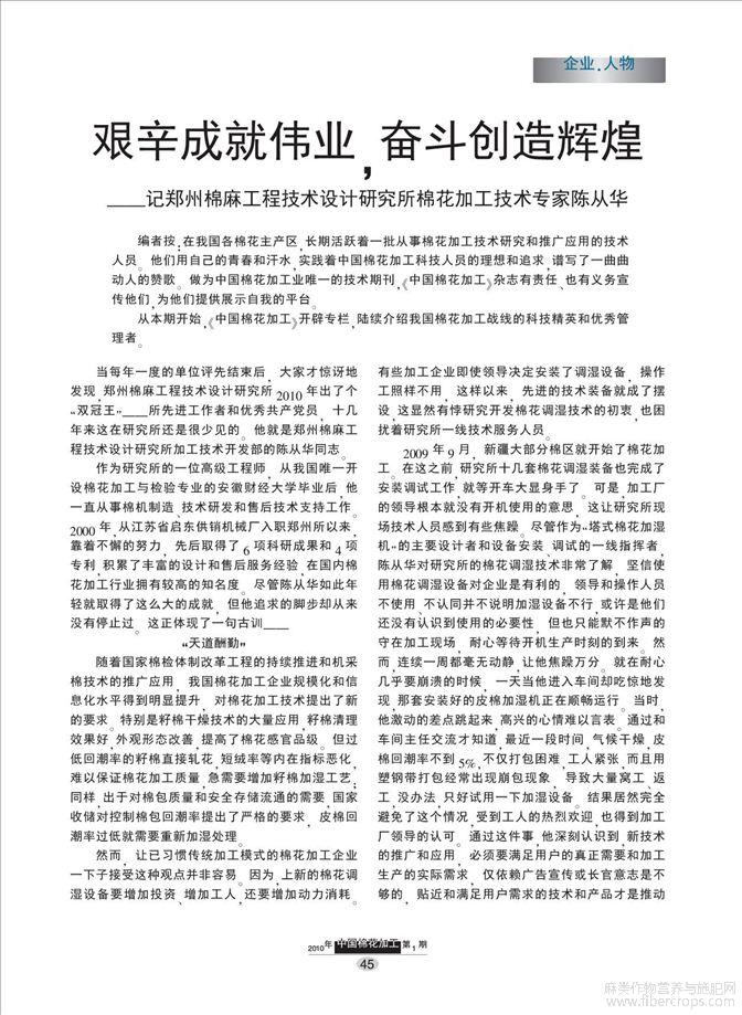 艰辛成就伟业_奋斗创造辉煌_记郑州棉麻工程技术设计研究所棉花加工技术专家陈从华