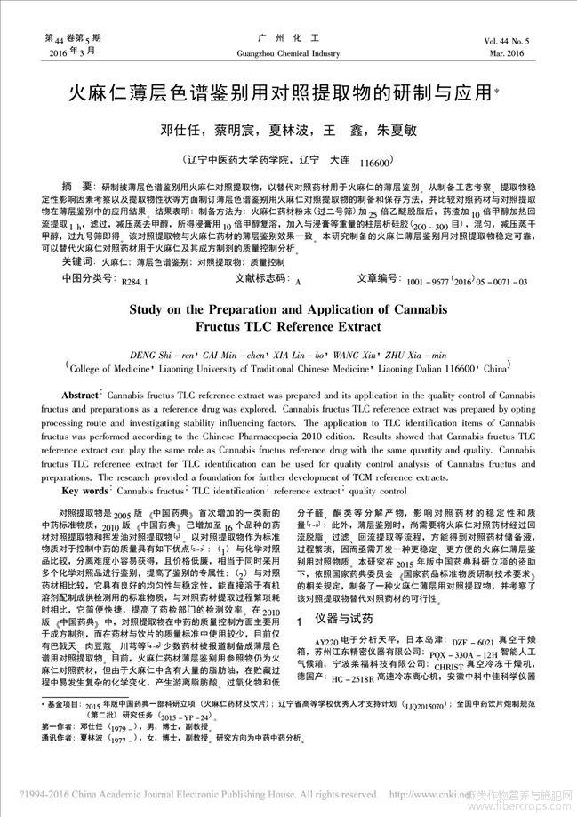 火麻仁薄层色谱鉴别用对照提取物的研制与应用