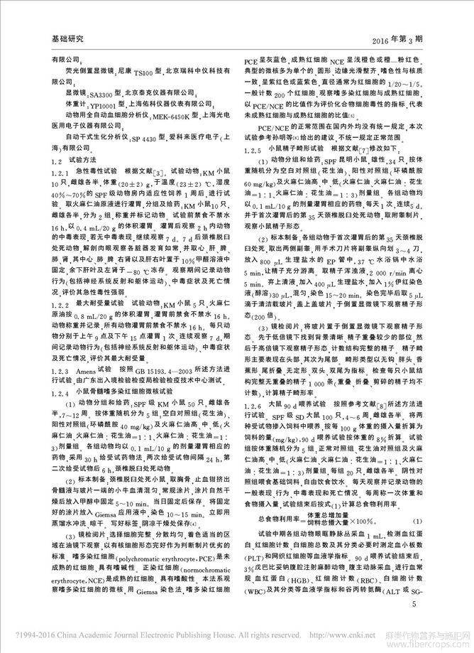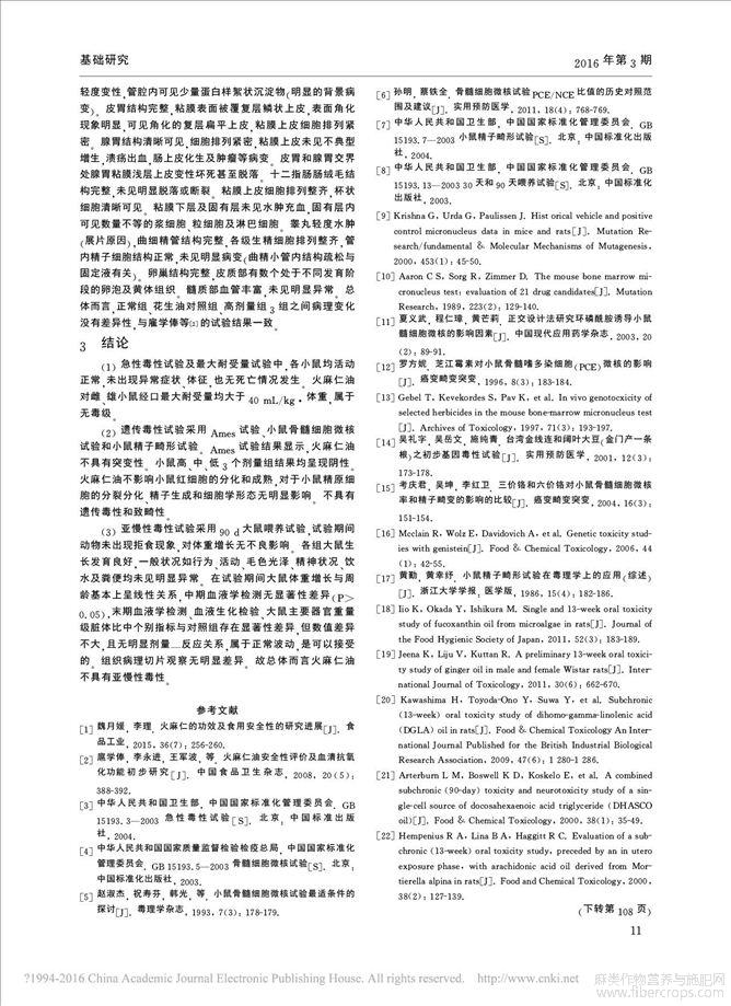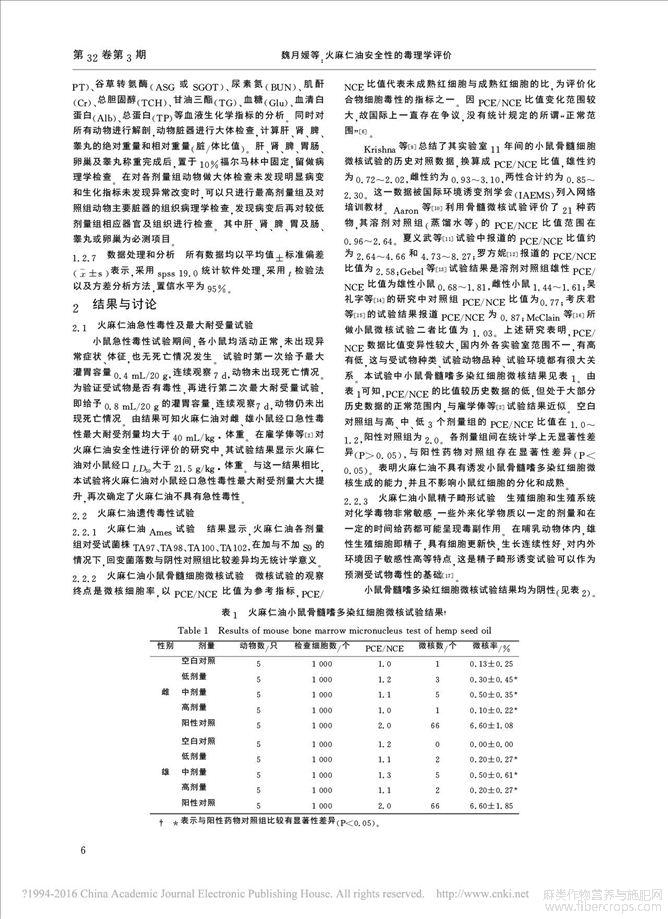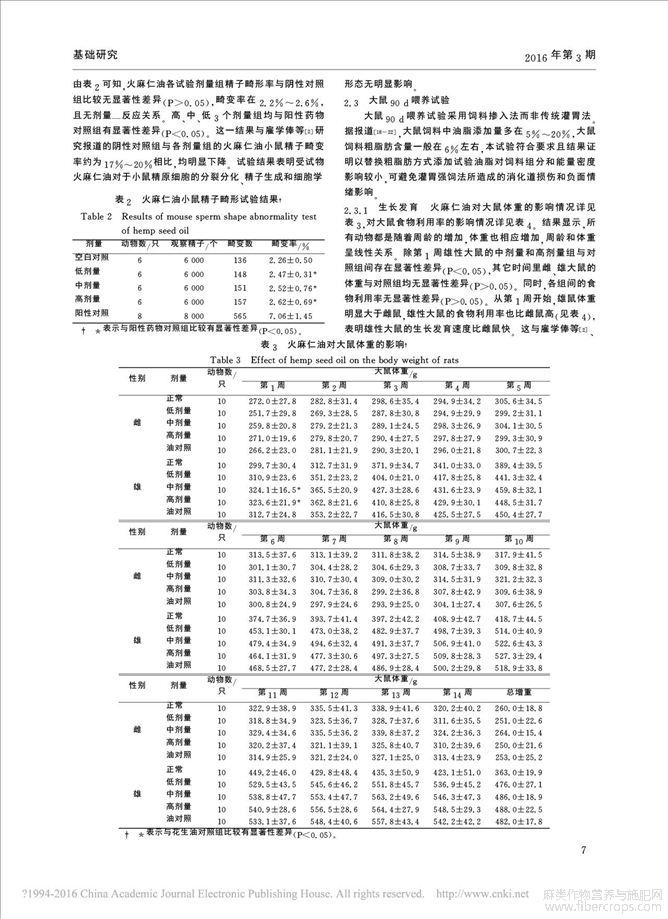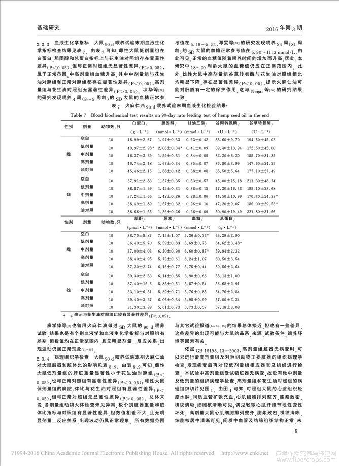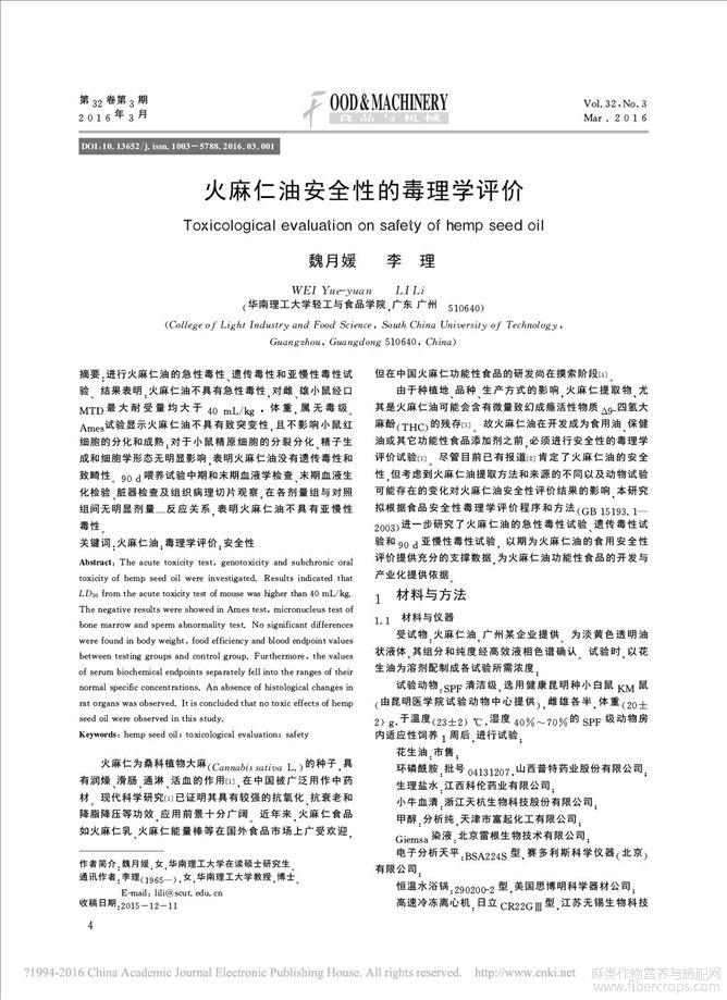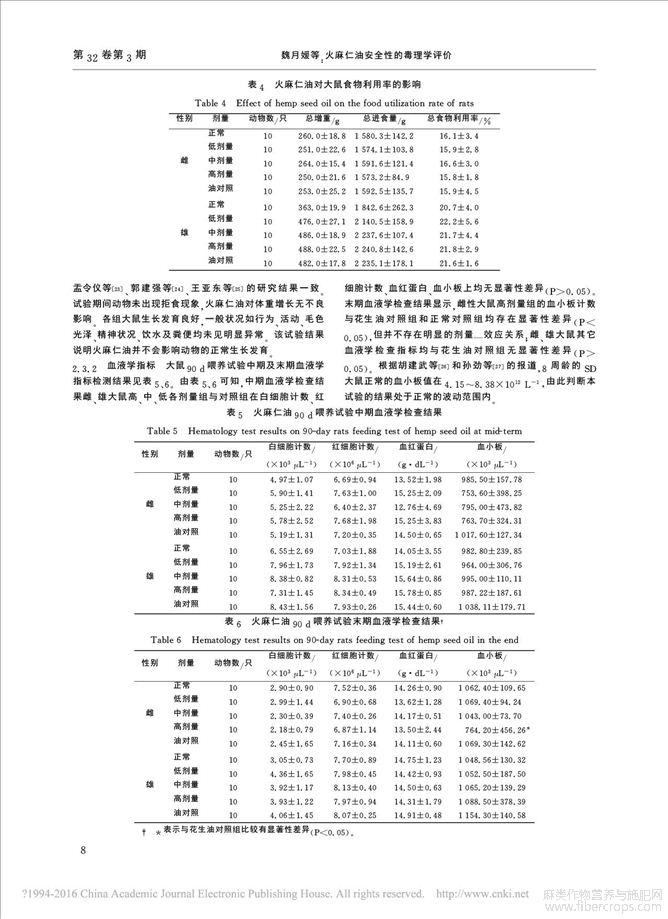 火麻仁油安全性的毒理学评价