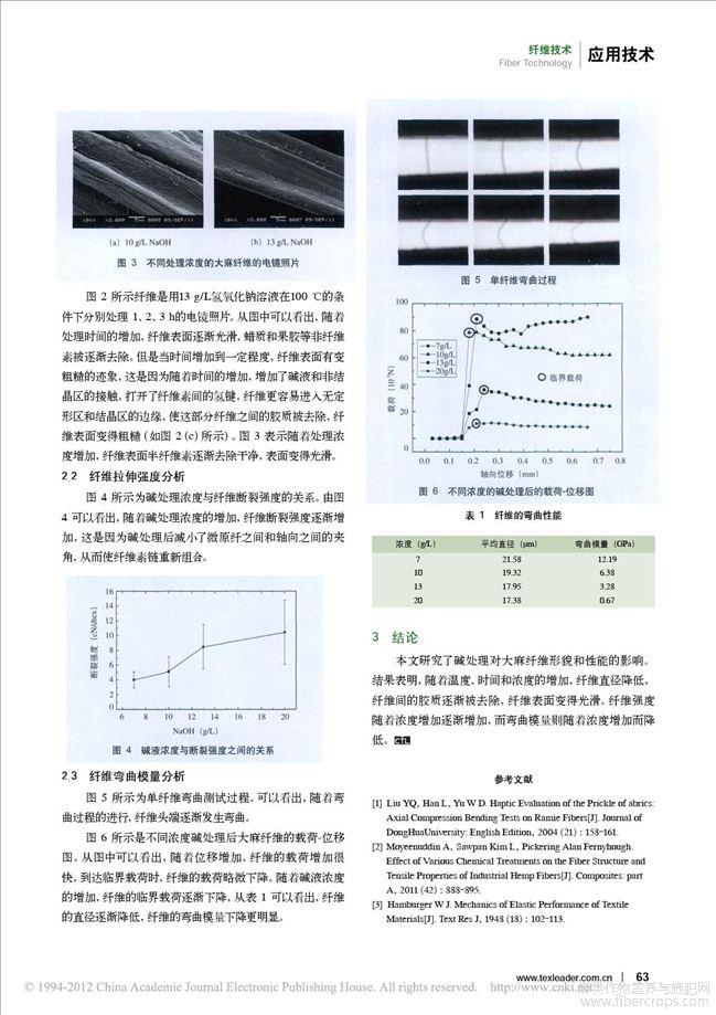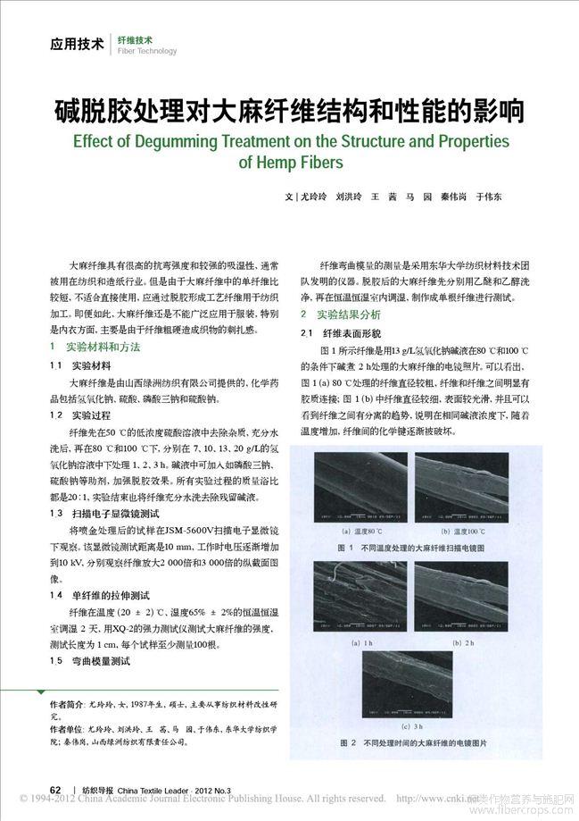 碱脱胶处理对大麻纤维结构和性能的影响