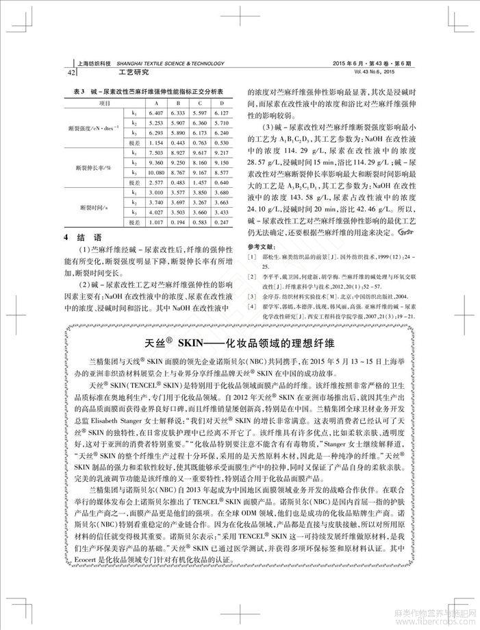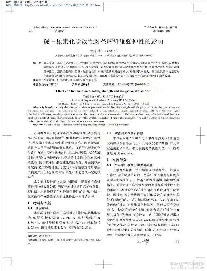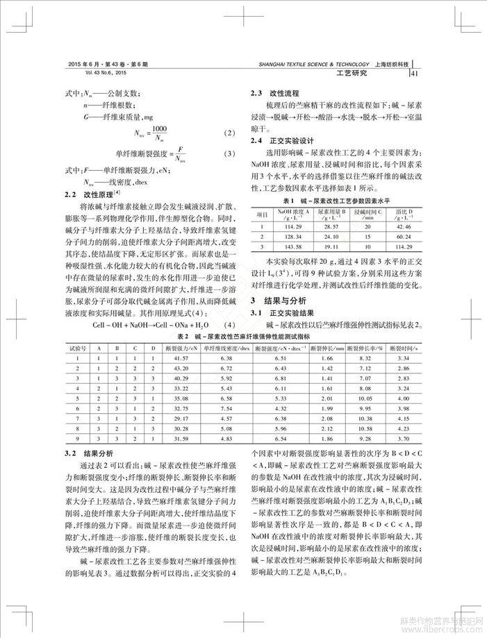 碱一尿素化学改性对苎麻纤维强伸性的影响