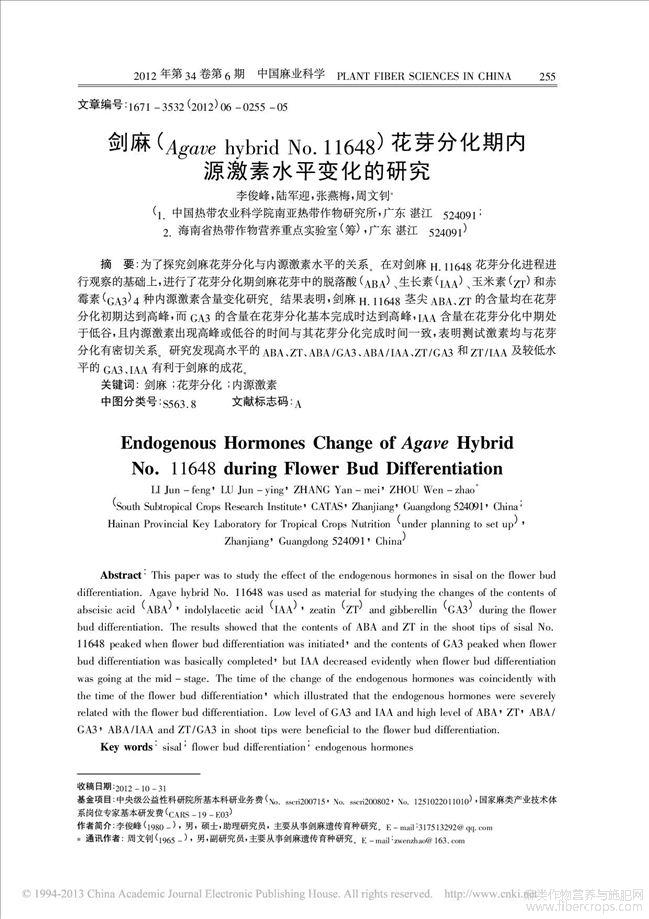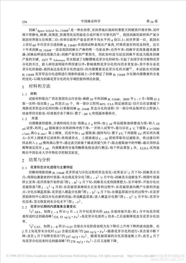 剑麻_AgavehybridNo_11648_花芽分化期内源激素水平变化的研究