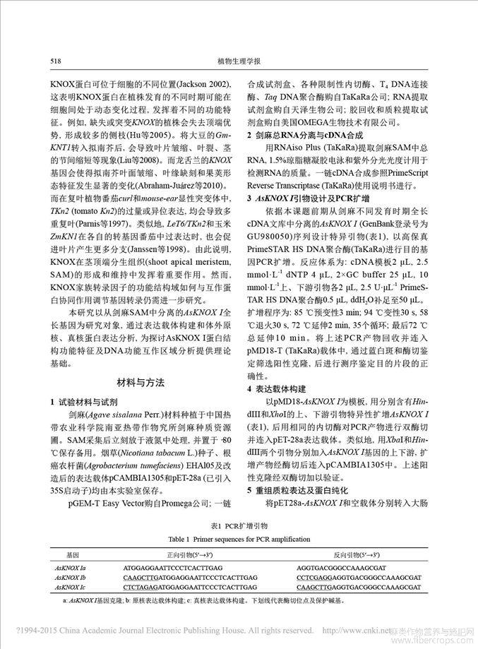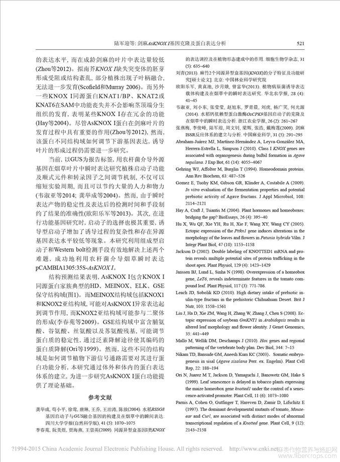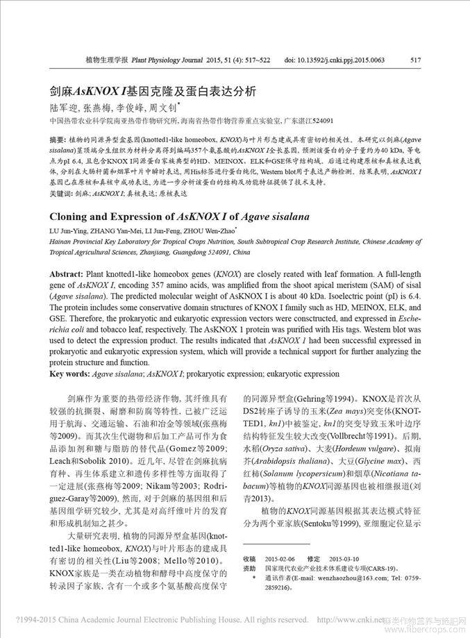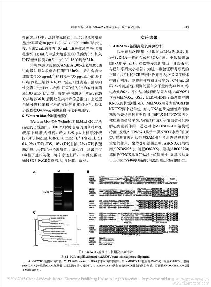 剑麻AsKNOXI基因克隆及蛋白表达分析