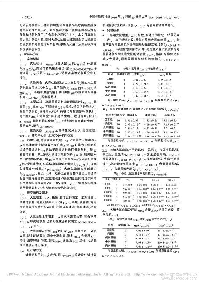 火麻仁油藻油混合油软胶囊对混合型高脂血症大鼠血脂及脂质过氧化影响