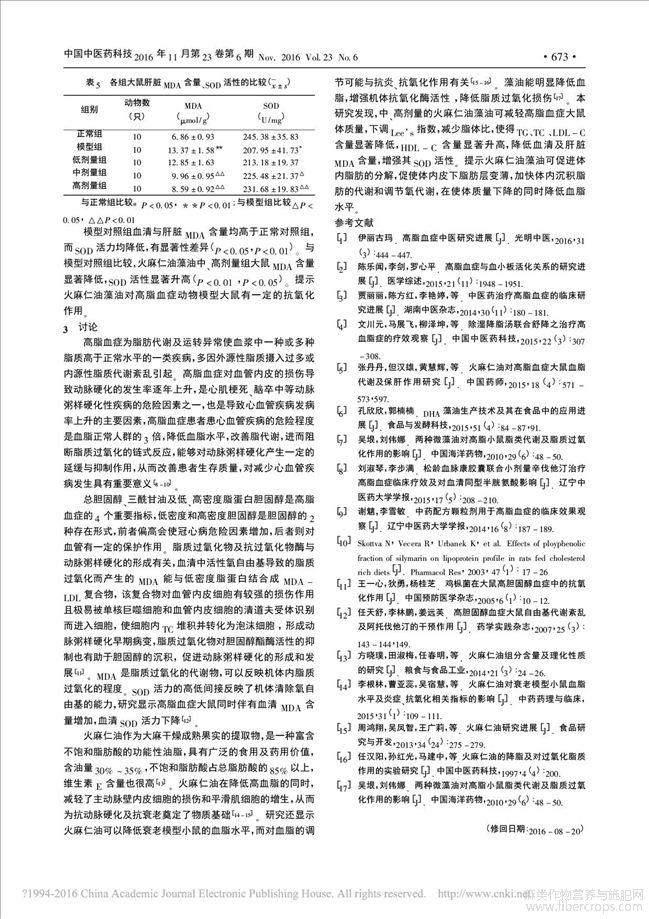 火麻仁油藻油对高脂血症大鼠血脂及脂质过氧化的影响