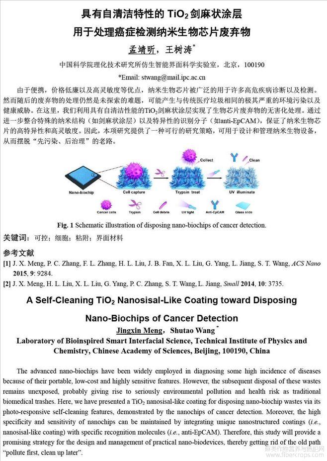 具有自清洁特性的TiO2剑麻状涂层用于处理癌症检测纳米生物芯片废弃物_孟靖昕(会议论
