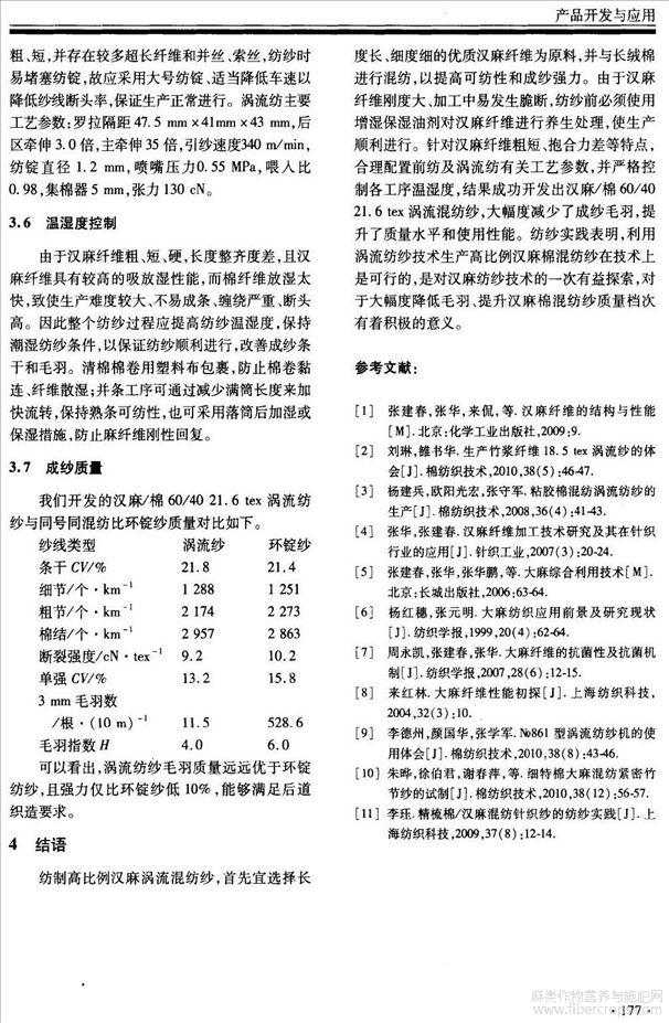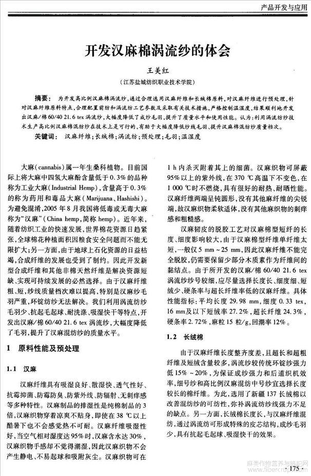 开发汉麻棉涡流纱的体会(会议论文)