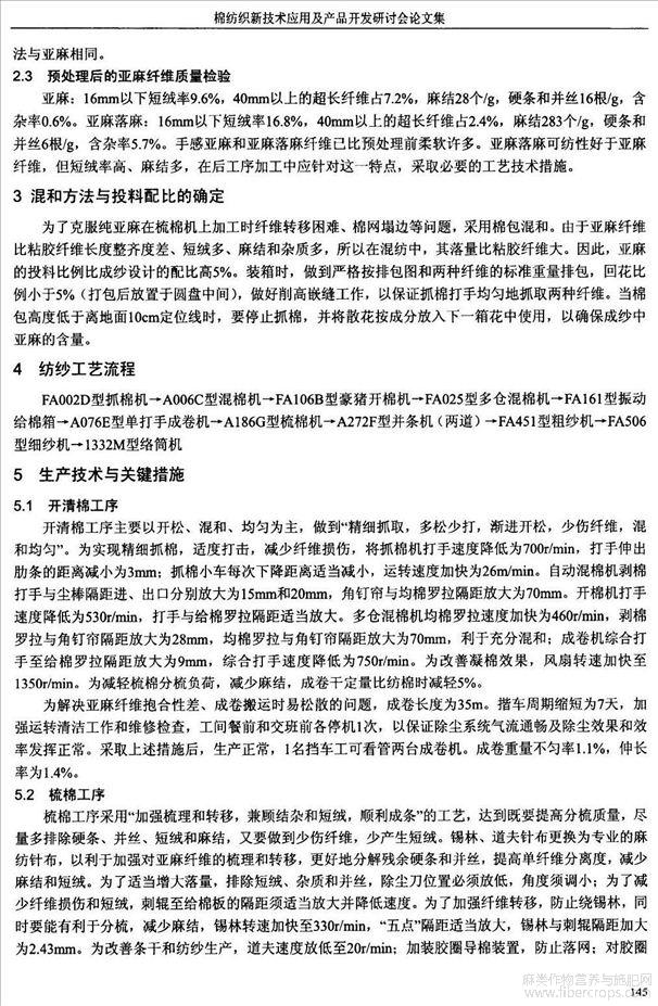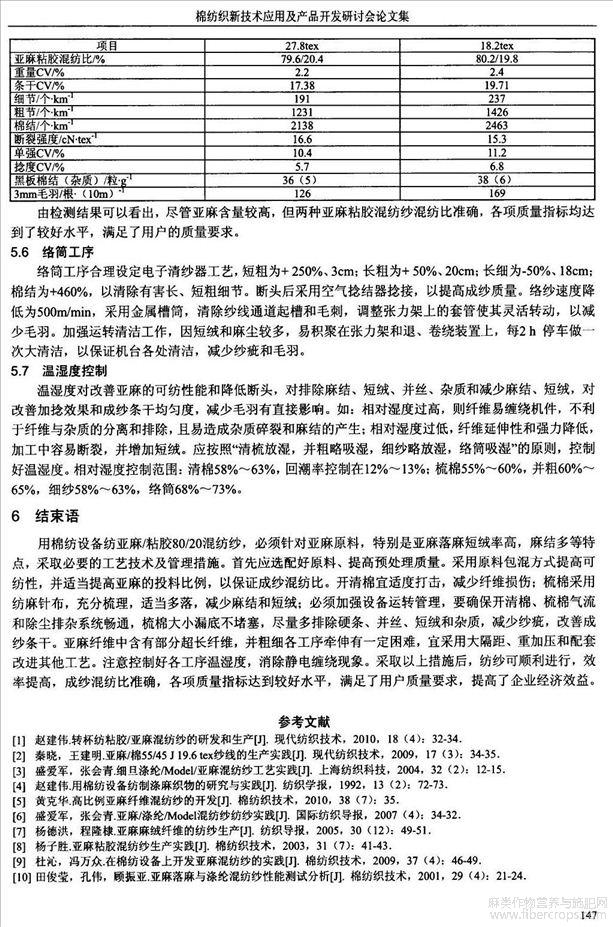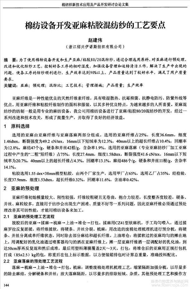 棉纺设备开发亚麻粘胶混纺纱的工艺要点(会议论文)