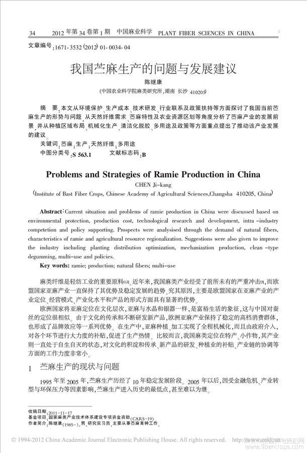 Copyright by Ramie Research Institute of Hunan Agricultural University