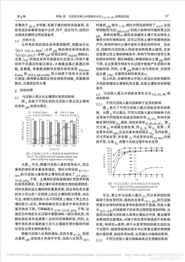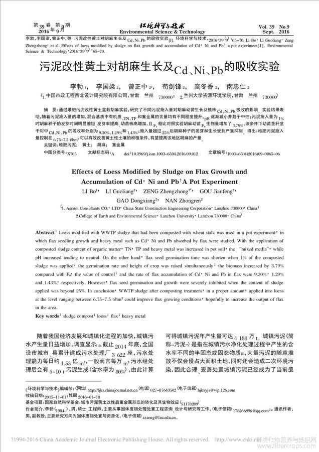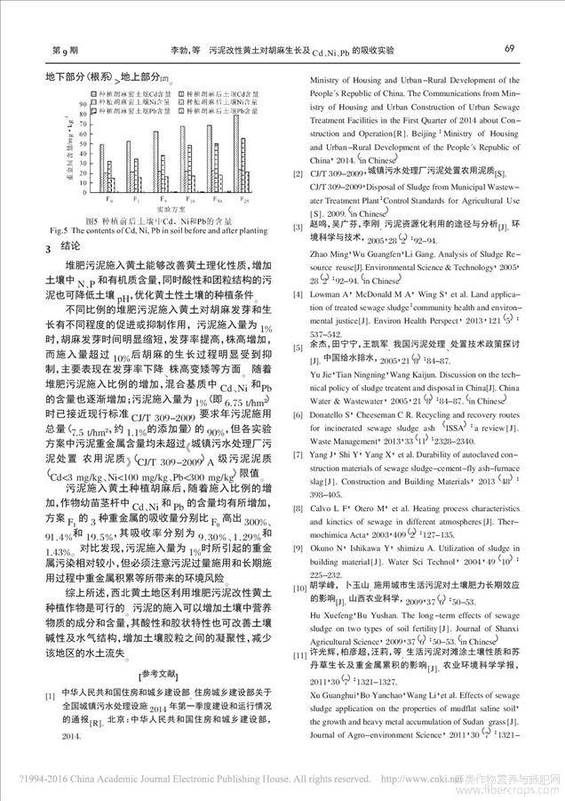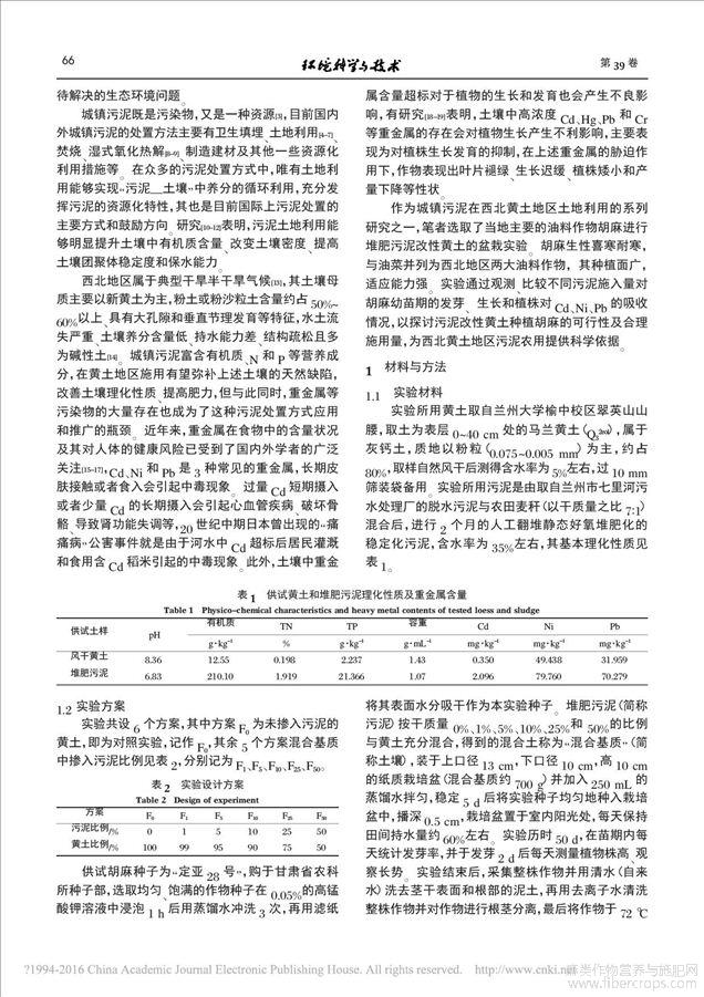 污泥改性黄土对胡麻生长及Cd_Ni_Pb的吸收实验