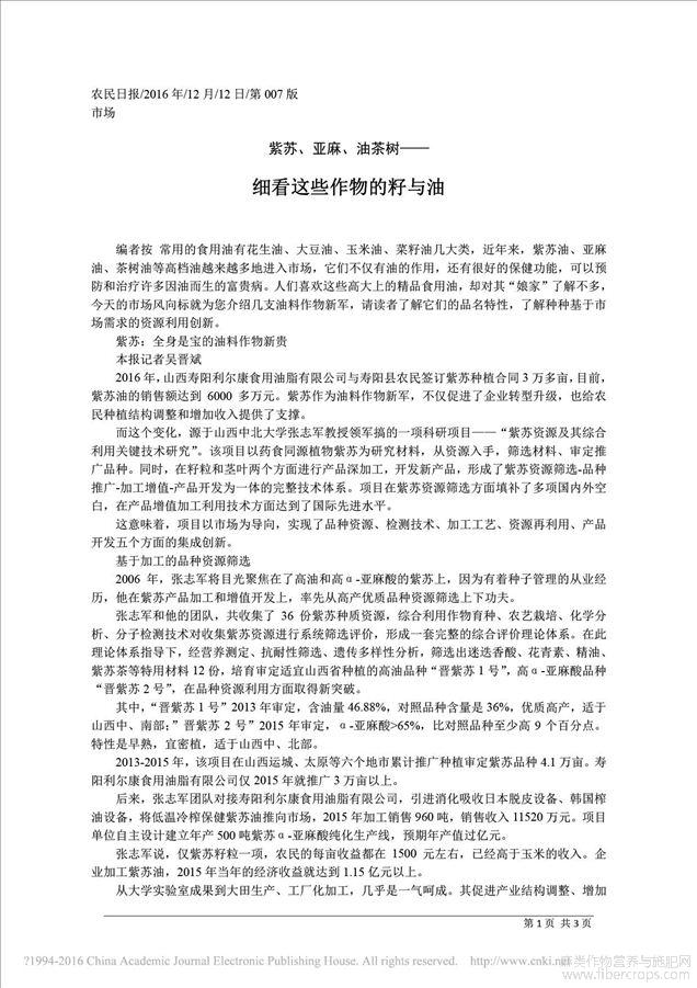 [麻进展]种群直流舀种式胡麻