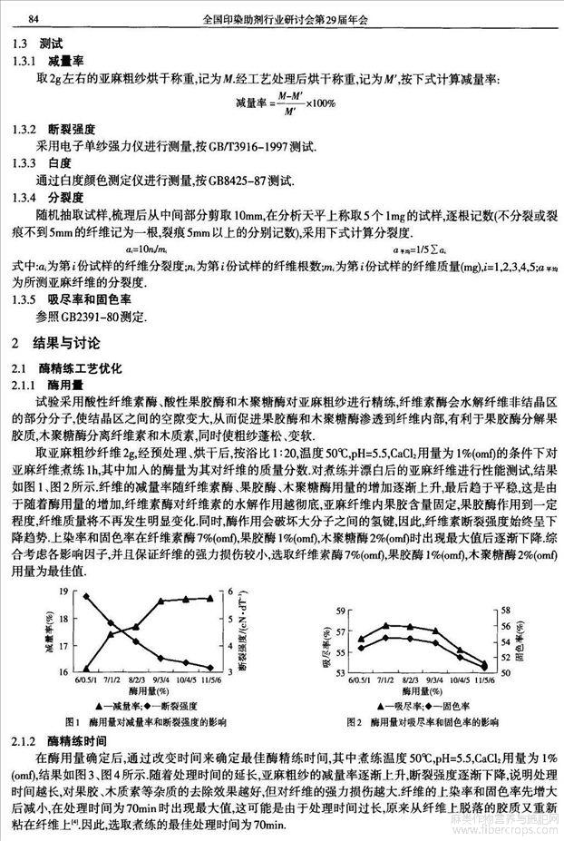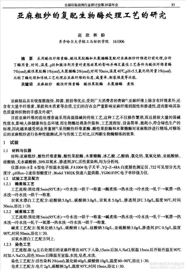 亚麻粗纱的复配生物酶处理工艺的研究(会议论文)