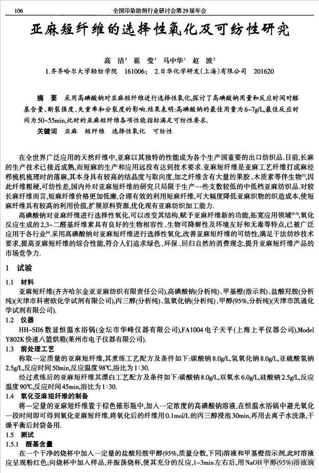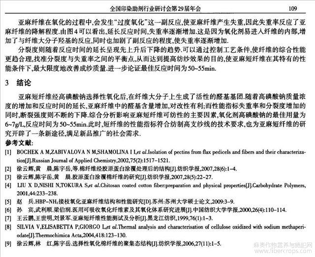 亚麻短纤维的选择性氧化及可纺性研究(会议论文)