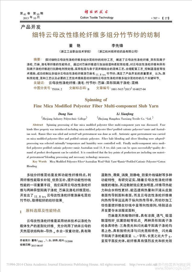 细特云母改性绦纶纤维多组分竹节纱的纺制