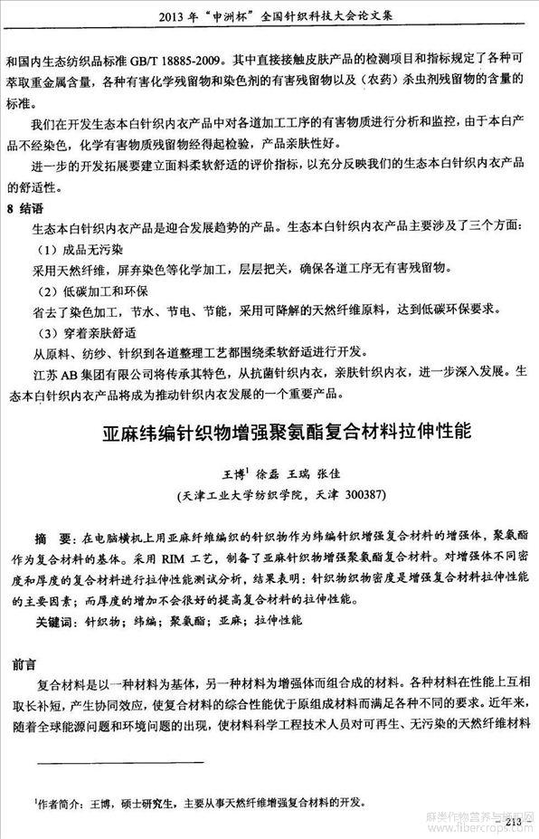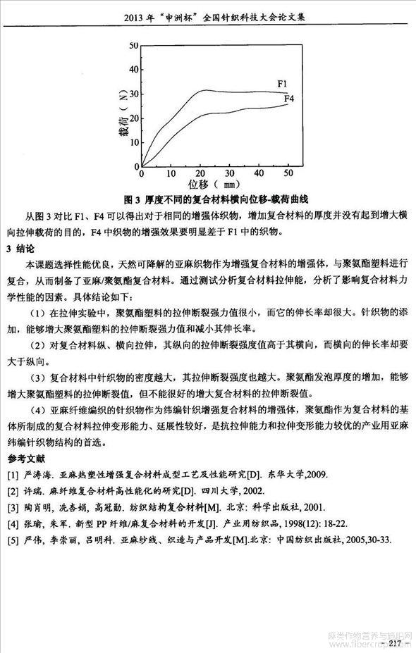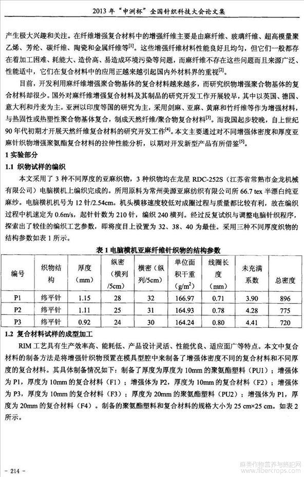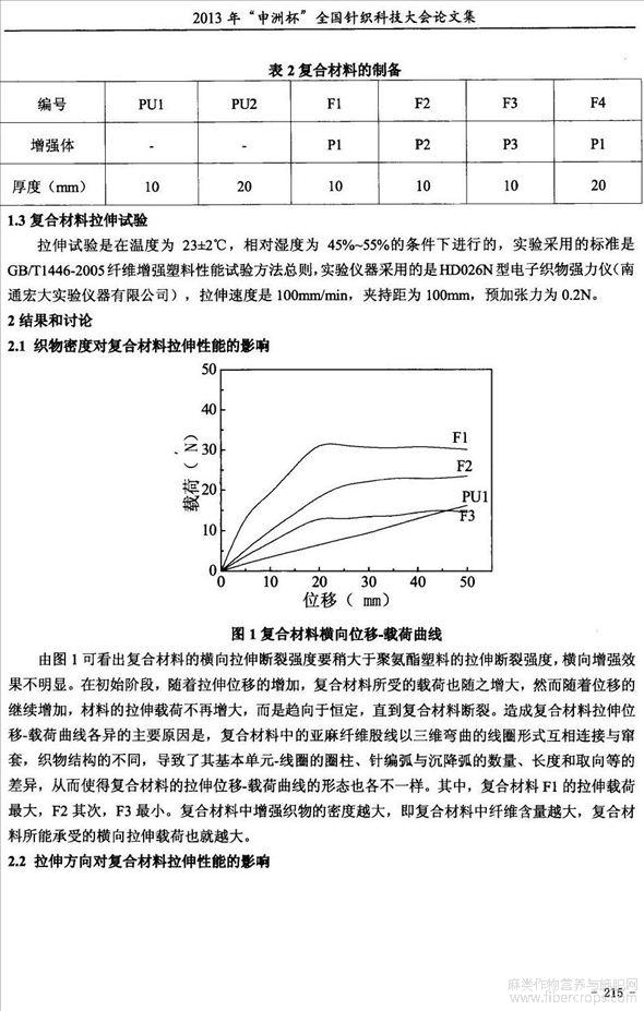 亚麻纬编针织物增强聚氨酯复合材料拉伸性能(会议论文)