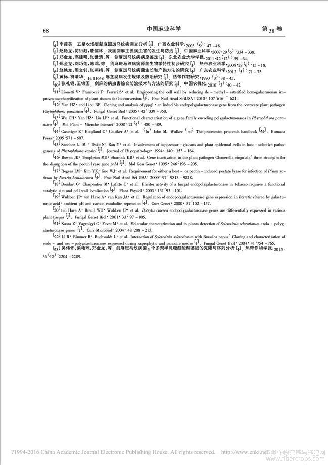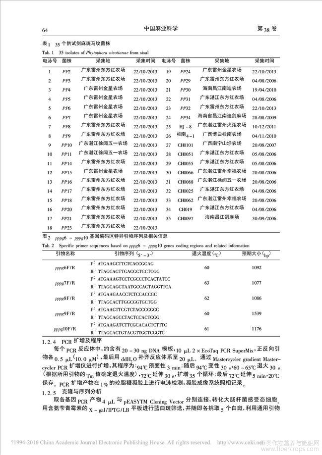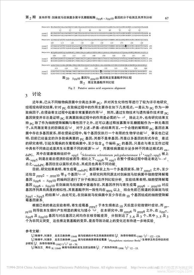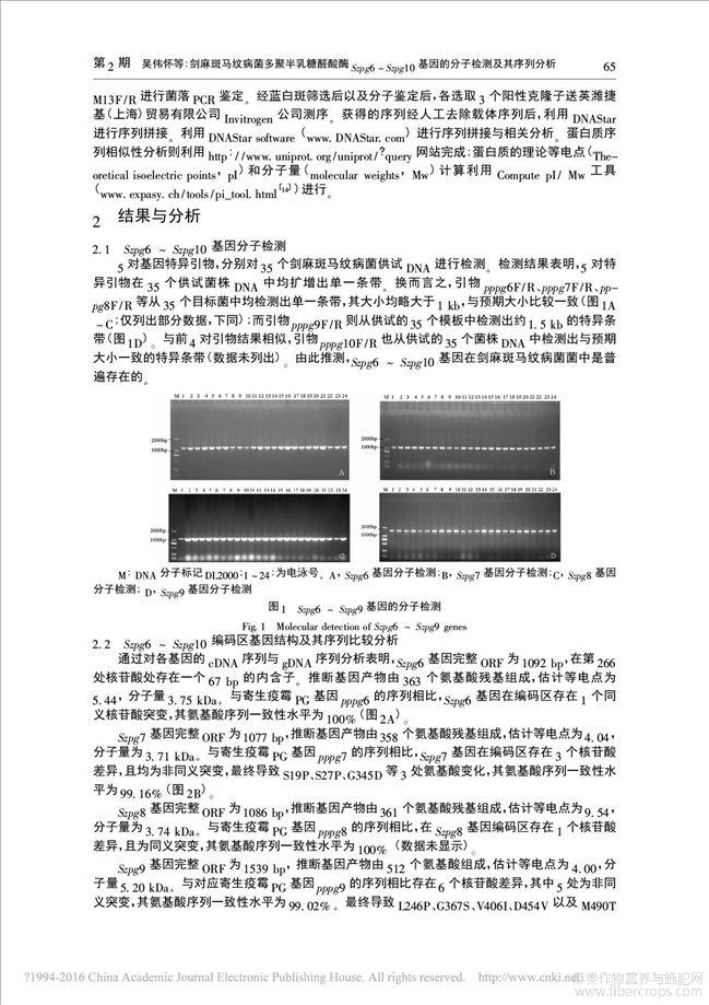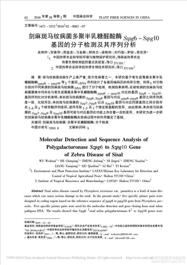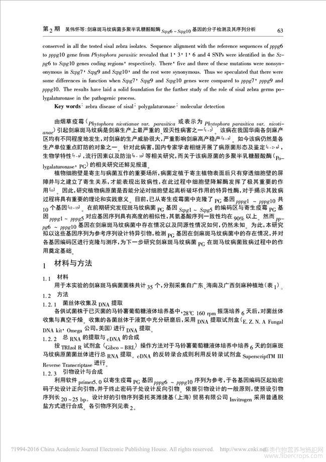 剑麻斑马纹病菌多聚半乳糖醛酸酶SZPG6-SZPG10基因的分子检测及其序列分析
