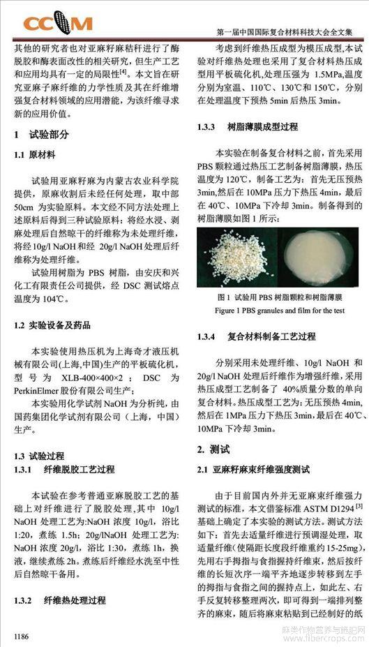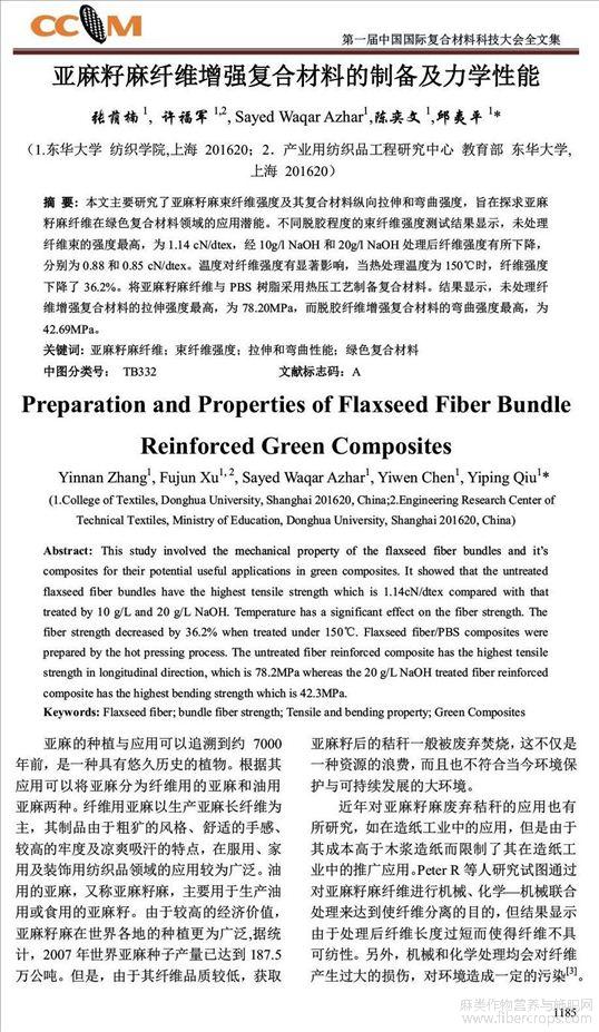 亚麻籽麻纤维增强复合材料的制备及力学性能(会议论文)