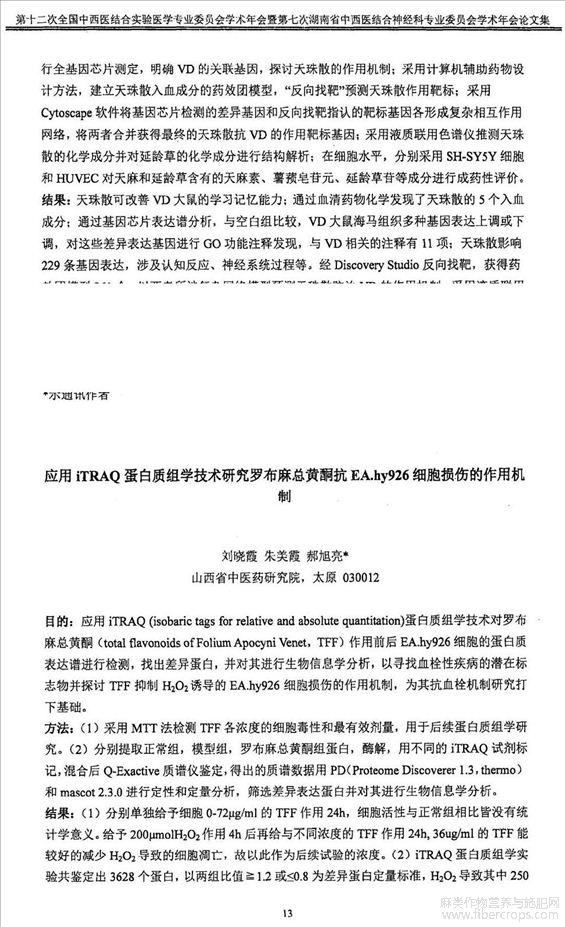 应用iTRAQ蛋白质组学技术研究罗布麻总黄酮抗细胞损伤的作用机制_刘晓霞(会议论文)