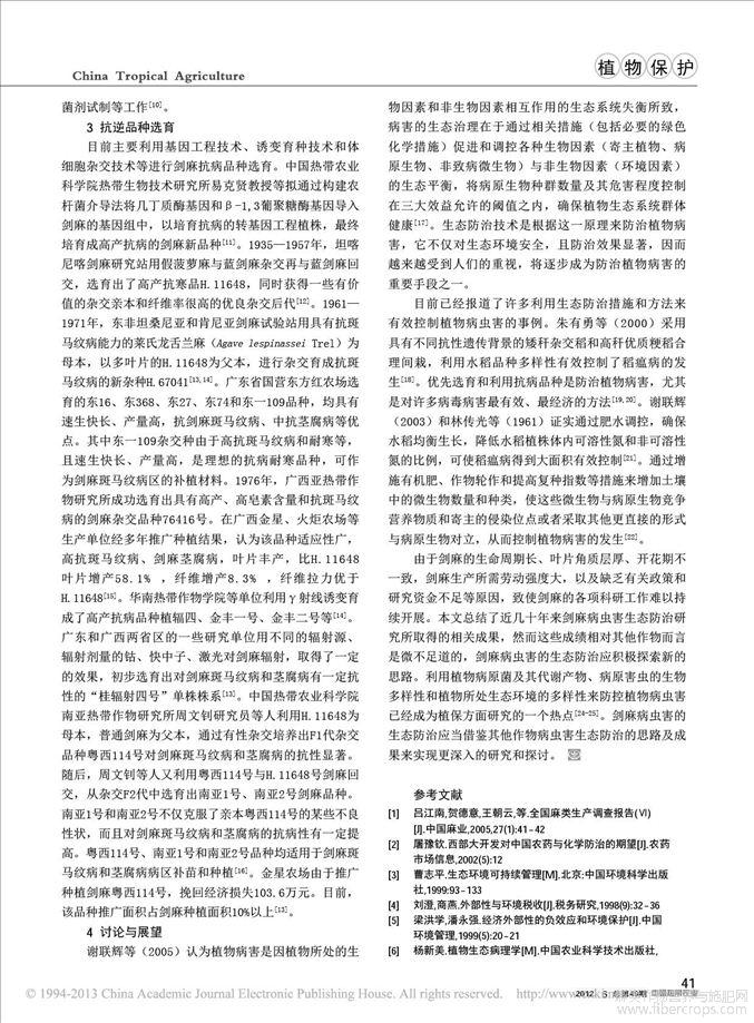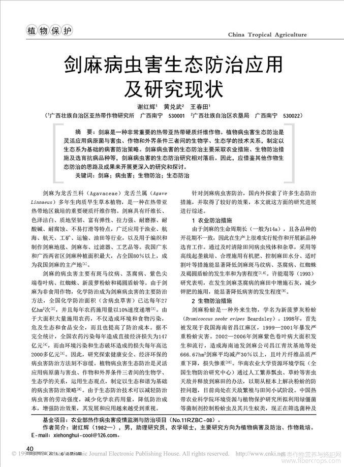 剑麻病虫害生态防治应用及研究现状