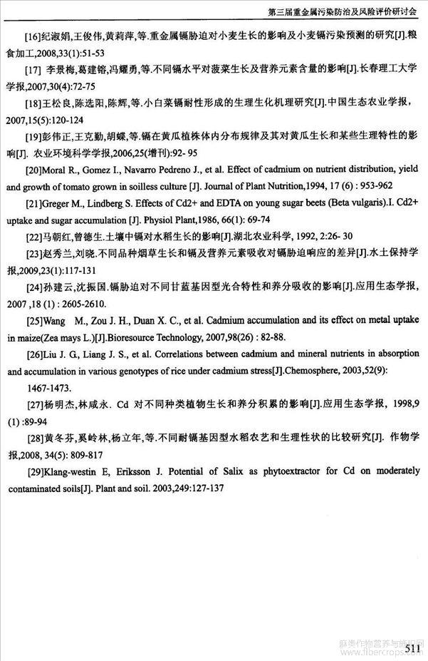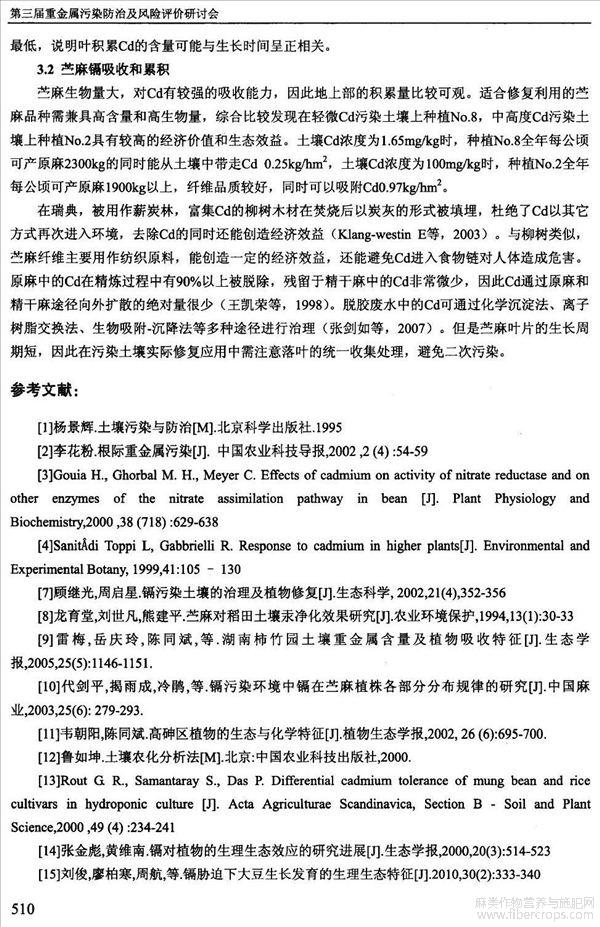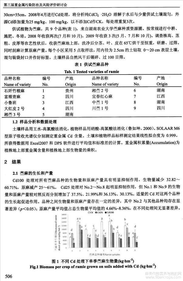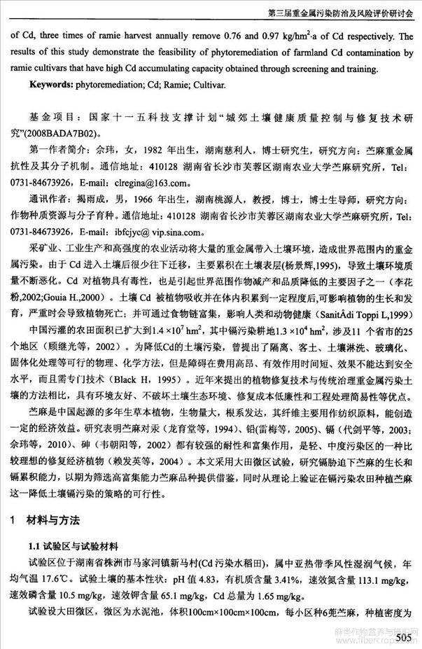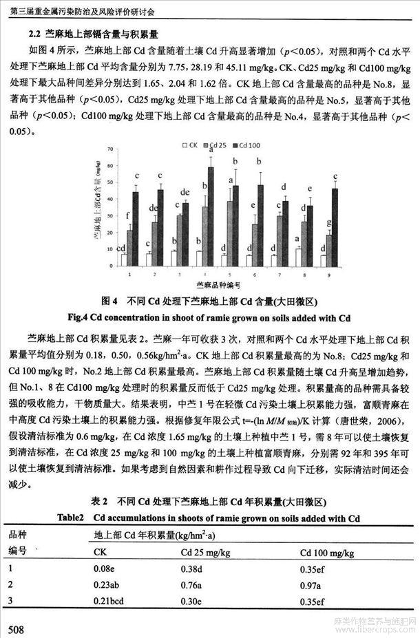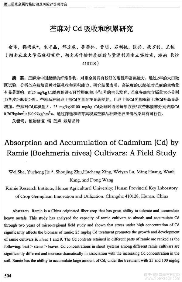 苎麻对Cd吸收和积累研究(会议论文)