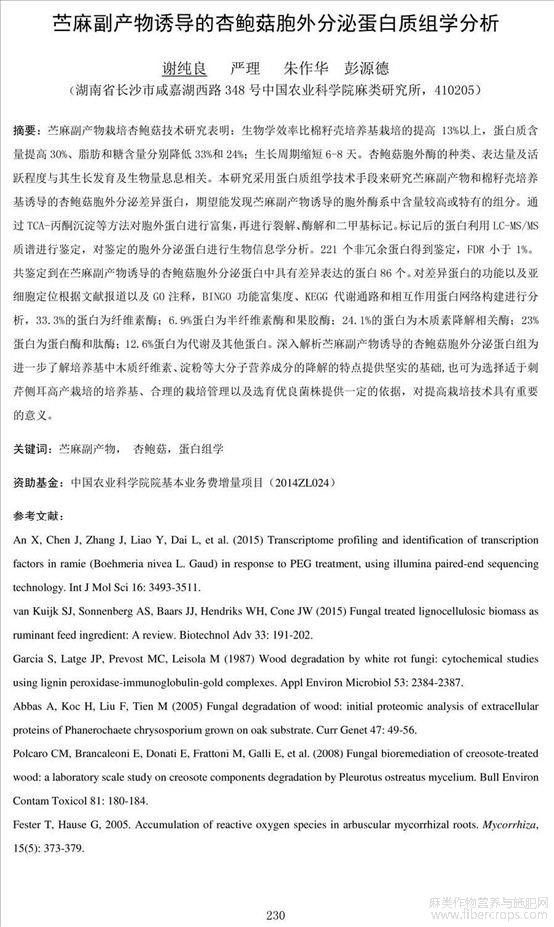 苎麻副产物诱导的杏鲍菇胞外分泌蛋白质组学分析_谢纯良(会议论文)