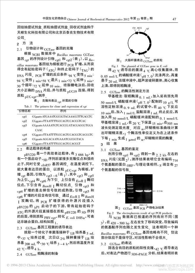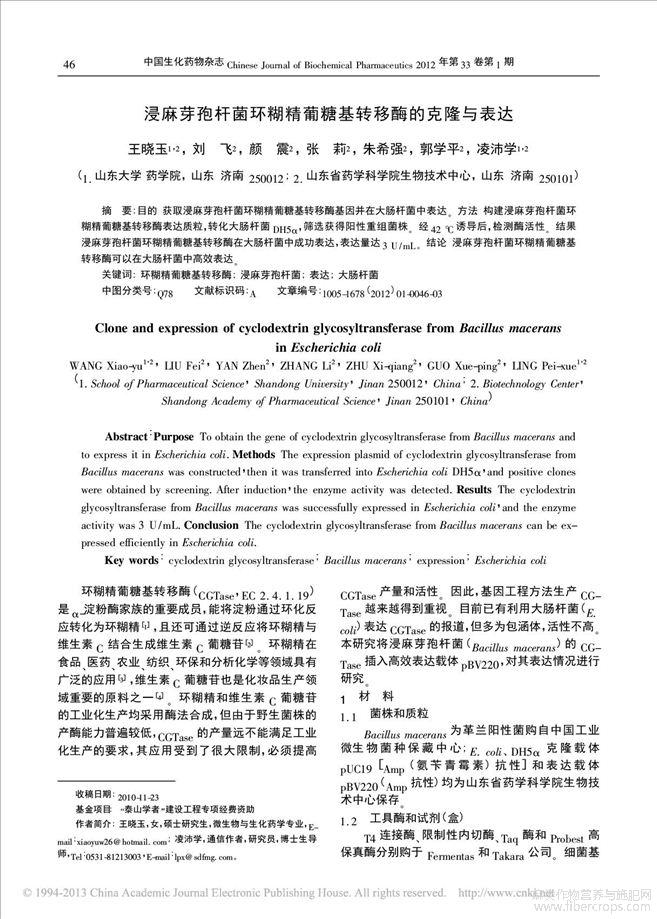 浸麻芽孢杆菌环糊精葡糖基转移酶的克隆与表达